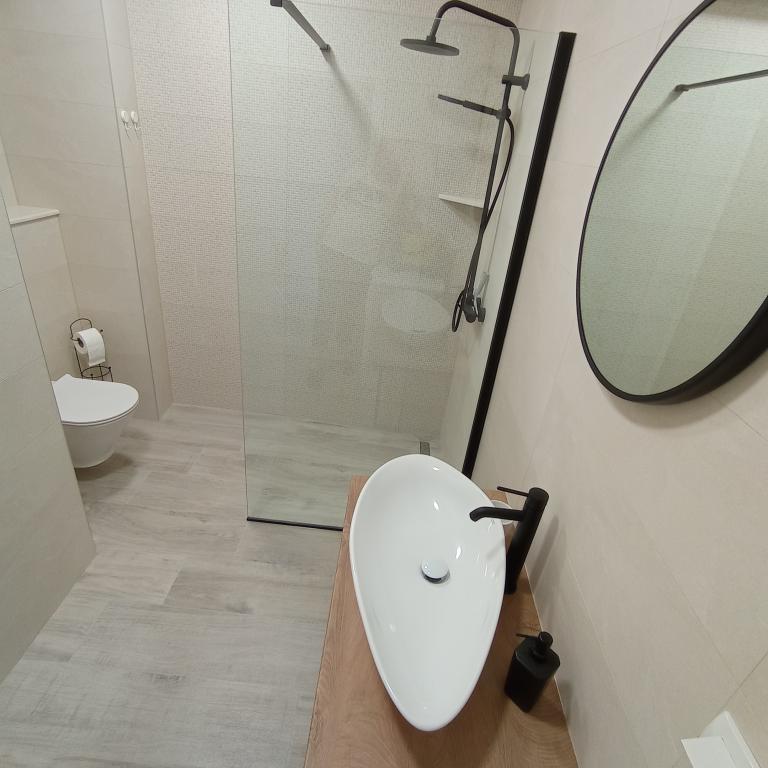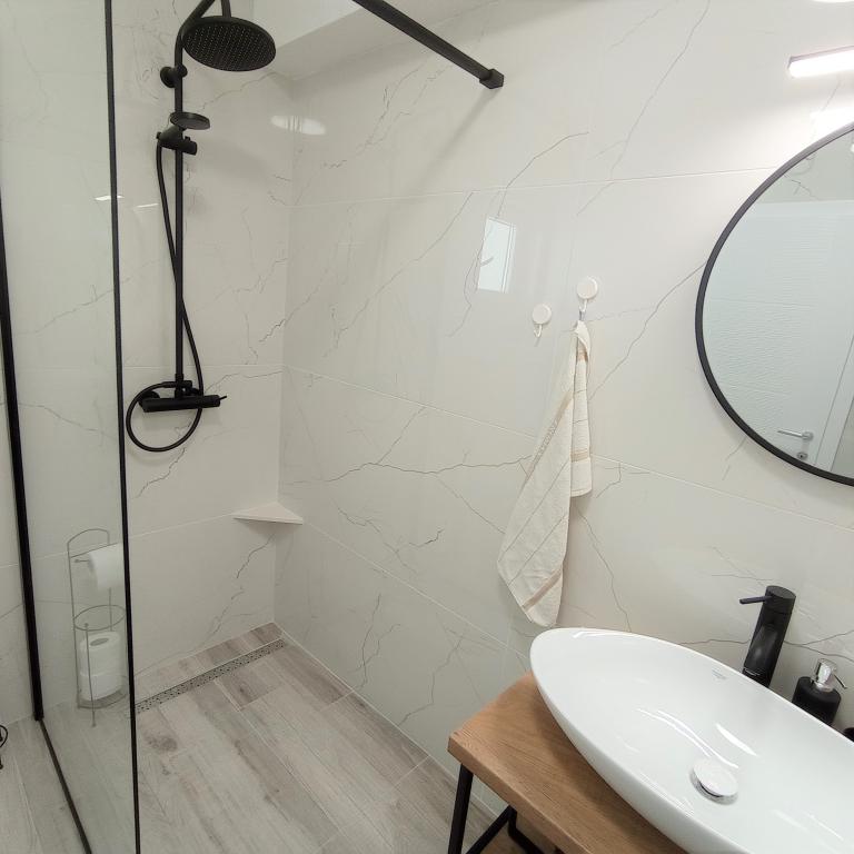 Sunt încântat de șederea de anul acesta în Croația în apartamentul lui Danijela și Mirko! Apartament renovat si super mobilat, utilat. Dispunerea dormitorului și a două băi a permis funcționarea confortabilă a două familii în apartament. Terasă perfect amplasată cu vedere la mare - nu adiacentă altor terase a dat un sentiment de intimitate ca într-o casă independentă. Gazde foarte dragute, cu care am avut o comunicare foarte buna inca de la inceputul rezervarii si plata in avans. Ne-au primit călduros cu orahovica de casă, iar la sfârșitul șederii am fost răsfățați cu delicioase clătite făcute de mama lui Mirko și rakija de casă :) Până la cea mai apropiată plajă frumoasă și potrivită pentru copii, pe jos până la 10 minute! În apropierea plajei, există baruri și pub-uri drăguțe cu atmosferă și mâncare foarte bună și servicii excelente, cum ar fi Emi bar & restaurant. În apropiere merită vizitat și centrul vechi al orașului Mimic, cu un restaurant de pește drăguț, Carevi Dvori. În general, un loc perfect pentru o vacanță relaxantă :)