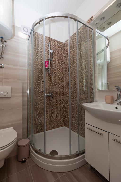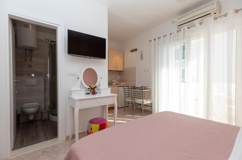 Vă recomandăm apartament Perak. Proprietarii au fost foarte prietenos. Am ajuns la ora 9 dimineața și imediat am fost oferit cafea și băuturi reci. Cămăruța era curat și parfumat, cu un climat de lucru și internetul și un balcon cu vedere la Marea Adriatică. Aproape de plaja frumoasă și liniștită, cu vederi frumoase și apă uimitoare. Vă recomandăm acest loc.