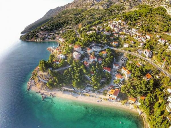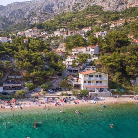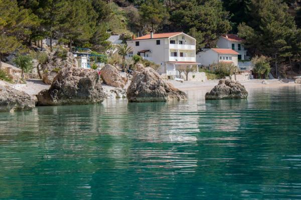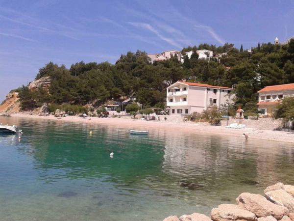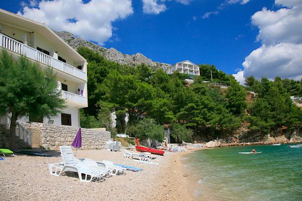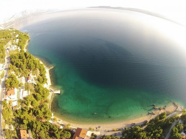 Un loc frumos pentru o vacanta. Locația apartamentului este excelentă, la doar câțiva pași de plajă. Apartamentul are 2 balcoane, din care va puteti bucura de o priveliste frumoasa, incantatoare si sa ascultati sunetul marii. Marea este limpede ca cristalul. Pietricele mici în mare și nisip puțin mai departe. Dotarea apartamentului este la un nivel bun, aveam tot ce ne trebuia. Proprietarii sunt oameni grozavi. Ei au comunicat cu noi pe tot parcursul șederii noastre pentru a vedea dacă avem nevoie de ceva. Eram 2 familii, o familie de trei și o familie de doi, ceea ce ne-a potrivit cu amenajarea celor două camere. O baie a fost suficientă pentru noi. In fata intrarii in apartament se afla o terasa mare cu gratar. Am putea lăsa acolo fără probleme și gonflabile și un paddleboard. Restaurantul grozav „Val” a fost ușor accesibil. Cafeneaua de deasupra stâncii este de asemenea grozavă. Poți sări de pe stâncă în mare. Am avut și valuri mari frumoase pentru câteva zile. Există un singur magazin alimentar în oraș, pe care trebuie să urcați scările până la drumul principal. Dar eram cu mașina, așa că am cumpărat de două ori mai mult ca să nu trebuiască să mergem în fiecare zi. Dar este mai bine să faci cumpărături de ex. în Omiš sau în Baška vode, când pleci în excursie undeva. Ne vom aminti de acest loc minunat. Este un loc de relaxare, e liniște, sunt puțini oameni și cu siguranță vom reveni aici.