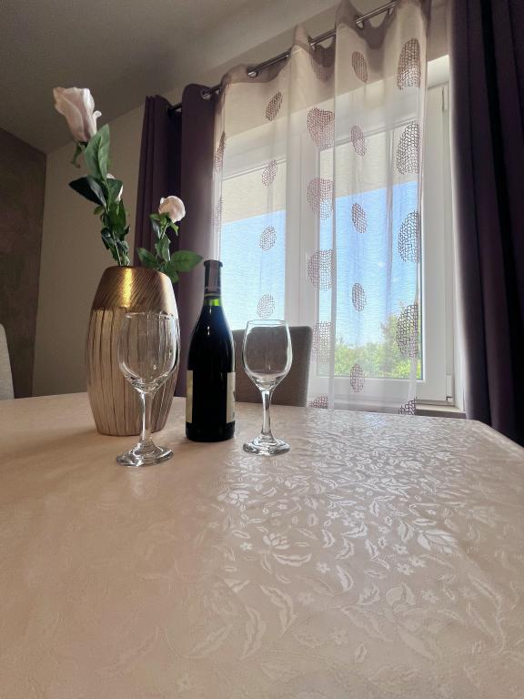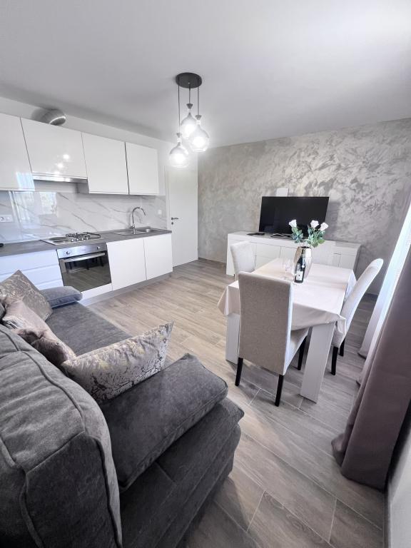 Apartamente decorate modern, ideale pentru familii cu copii și cupluri. Sunt situate într-o locație liniștită, pe un deal ușor, și oferă vedere la mare și la împrejurimi. Distanța de cea mai apropiată plajă este de 900 m, iar de centrul comercial la 600 m, iar stația de autobuz este la 3 minute de mers pe jos.