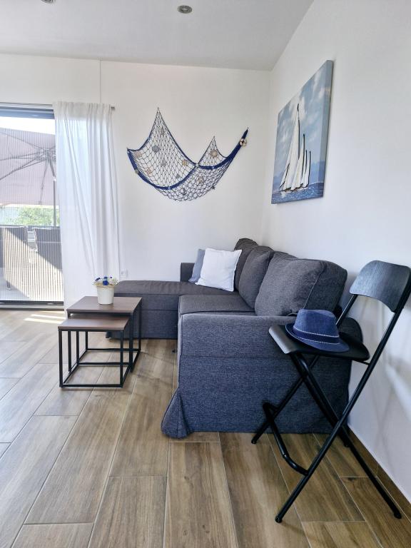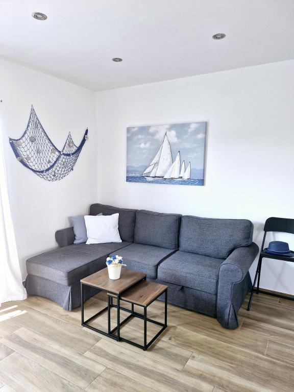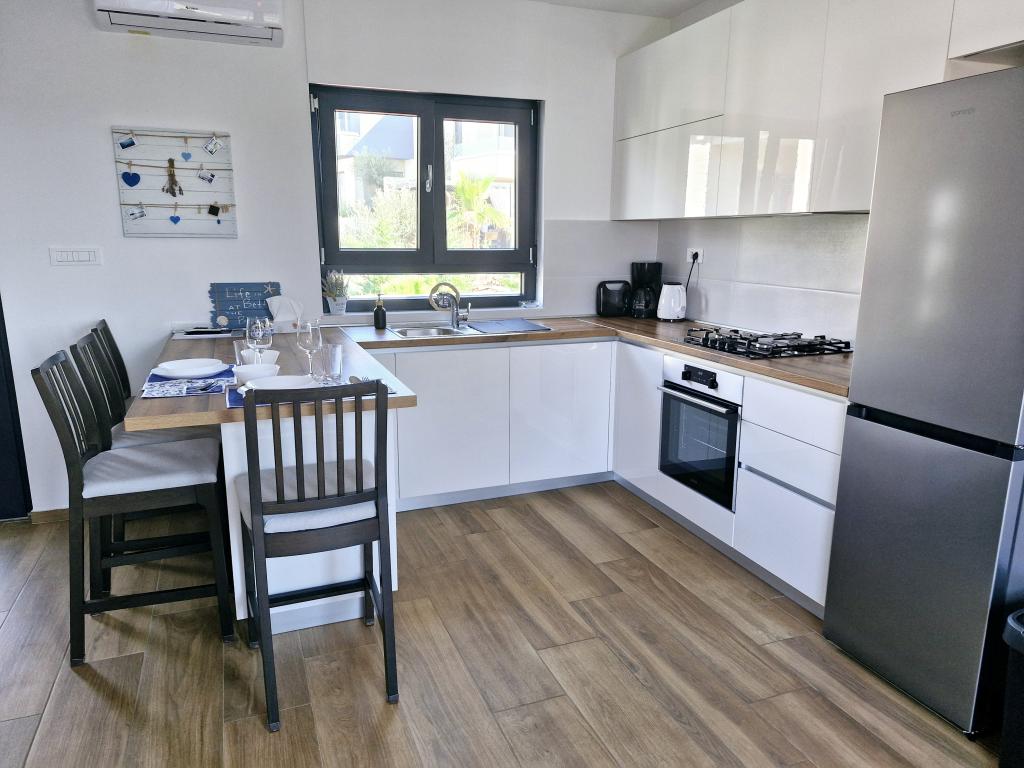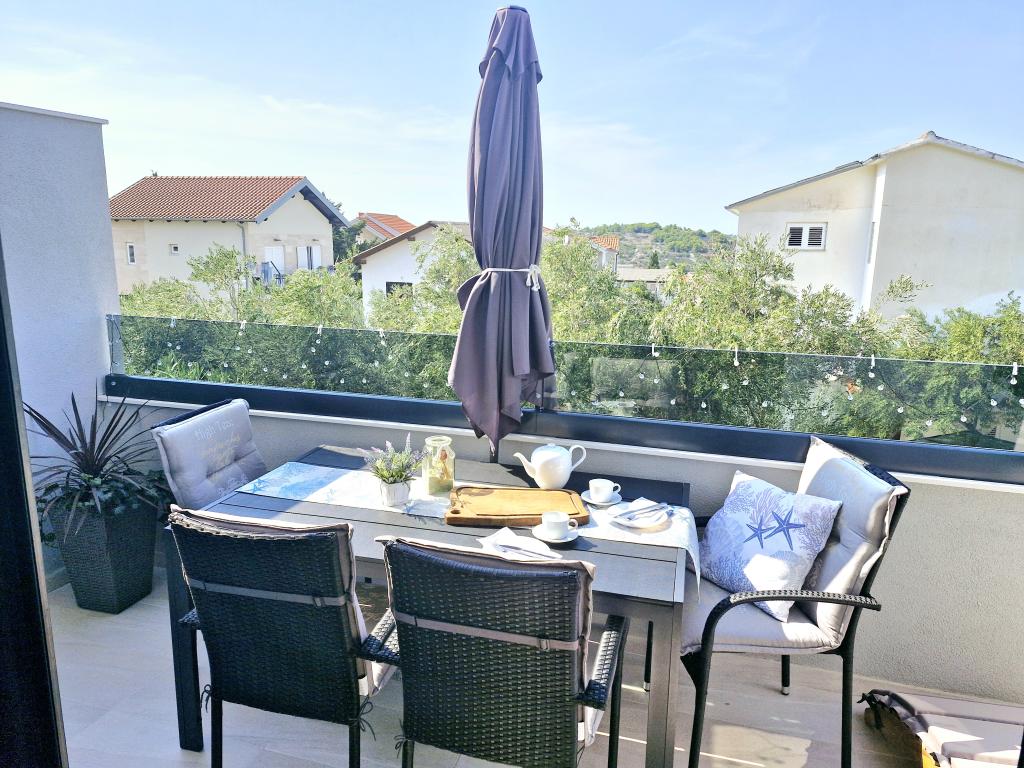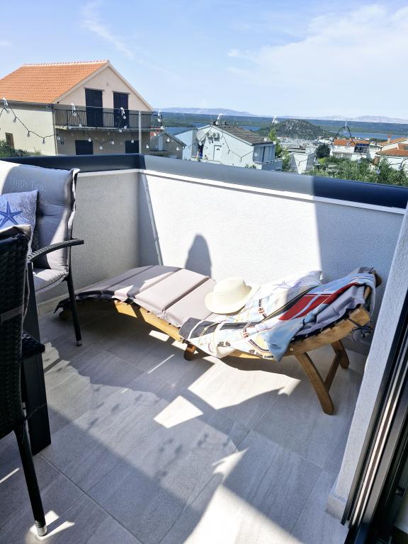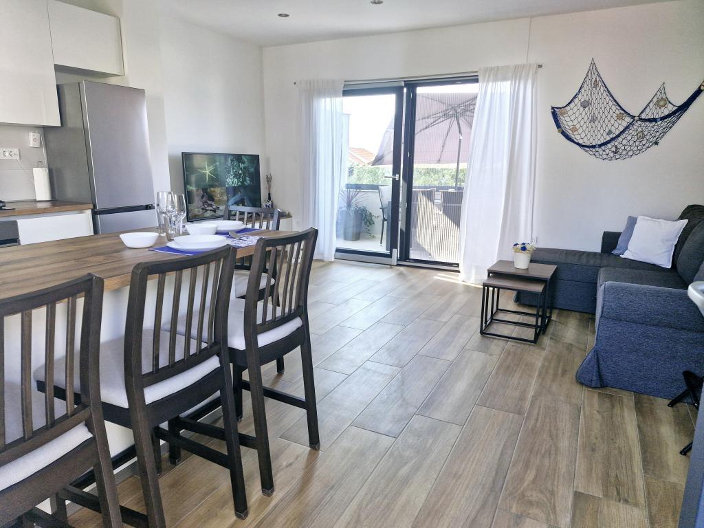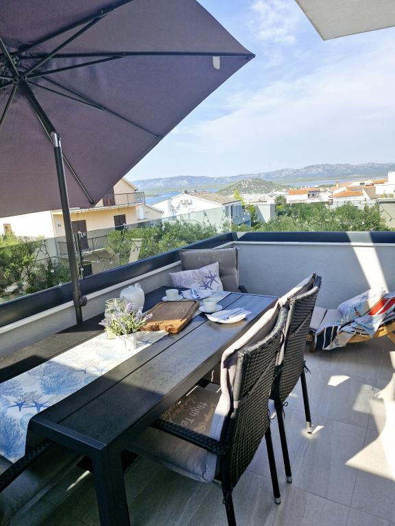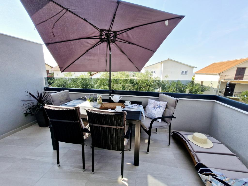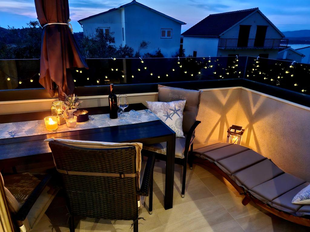 Apartamentul este situat pe insula Murter din orașul Murter. Este legat de continent printr-un pod, care asigură pe deplin comunicația de trafic. Apartamentul este situat intr-o casa recent renovata, iar suprafata acestuia este de 50 mp. Apartamentul poate găzdui până la 3 persoane (2+1). Este primul etaj al unei case situate pe o strada linistita si ca atare ofera liniste si discretie pentru o vacanta placuta. Este compus dintr-o bucătărie/sufragerie/living, un dormitor, o baie și un balcon cu vedere la mare. In dormitor se afla un pat dublu (dimensiuni 160x200cm), iar in living este o canapea extensibila confortabila. Este dotata cu toate electrocasnicele, televiziune 4k Android si satelit, Internet (Wi-Fi), aer conditionat si un loc de parcare supravegheat video. O mașină de spălat este disponibilă pentru a vă menține rufele curate în timpul șederii dumneavoastră în apartamentul nostru. Clădirea nu este destinată fumătorilor, dar are un balcon unde este permis fumatul. Acordam multa atentie intretinerii apartamentului.