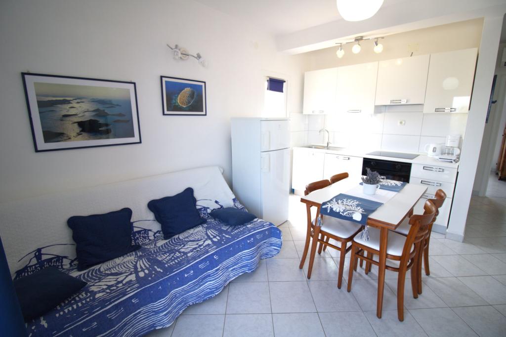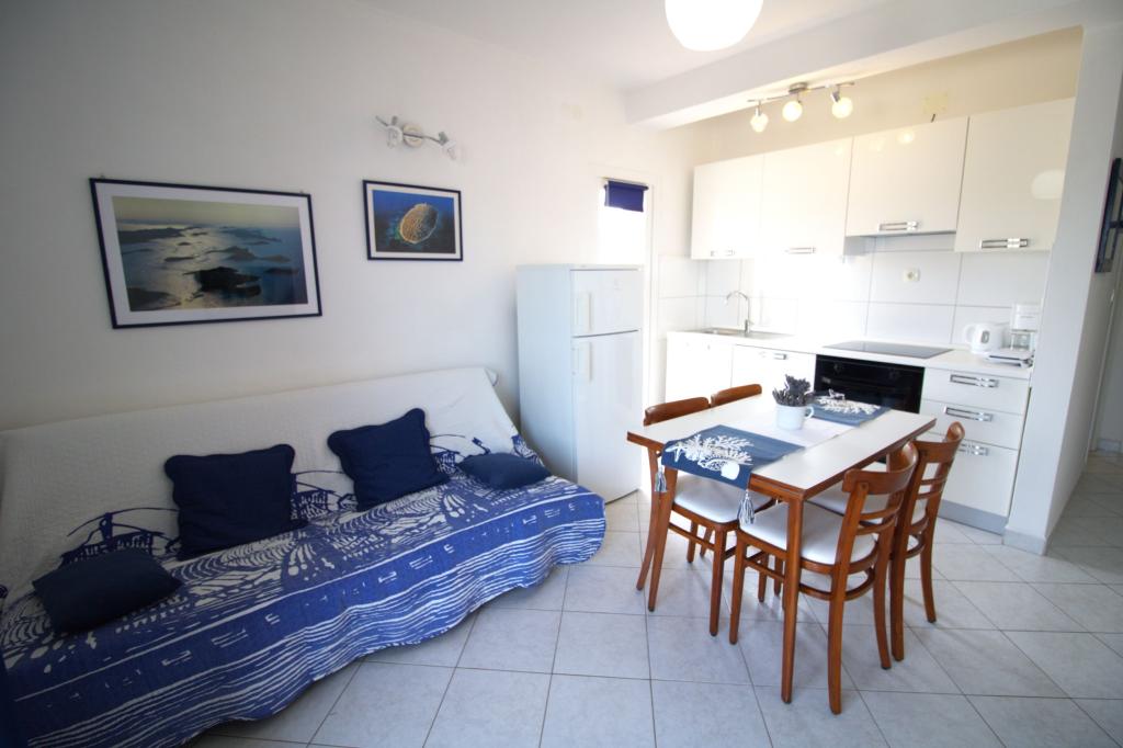 Apartament recent renovat și complet mobilat, primul rând la mare. Apartamentul este format dintr-un dormitor unde pot dormi doi adulti. Apartamentul are un living cu o canapea care poate fi folosita ca pat suplimentar. Parcarea este gratuita in curtea din fata apartamentului. Apartamentul are vedere la mare și la întregul golf Murter. Este situat intr-o locatie excelenta, este de max. La 10 minute de mers pe jos de plaja cu nisip din Podvrška și la doar 70 de metri de plaja locală Luka (o combinație de plajă de beton, pietriș și nisip. Primul magazin (Konzum) este la numai 100 de metri de apartament. Apartamentul este un 10 -minut de mers pe jos de centrul orașului Murter.