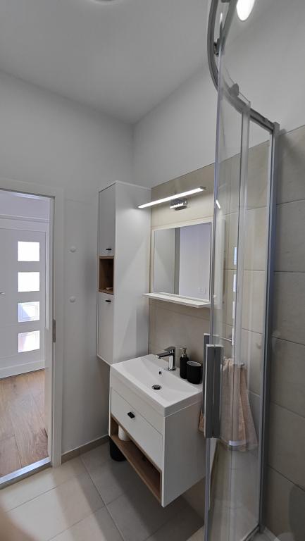 Apartament complet renovat, într-un cadru privat, cu o terasă mare și vedere la mare, la 300 m de plaja cu nisip Slanica. Oaspeții au acces la un grătar și un spațiu pentru socializare în curte, precum și la un loc de parcare securizat. Apartamentul are un dormitor separat mare. Bucătăria este complet utilată, cu aparat de cafea, mașină de spălat vase, frigider mare și congelator, fiind disponibilă și o mașină de spălat.