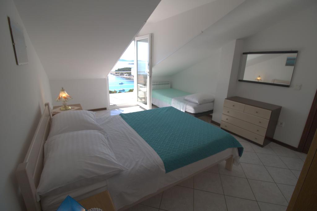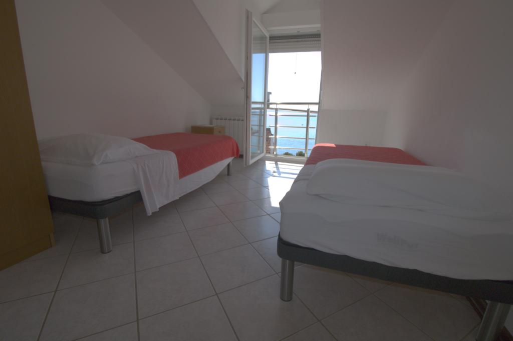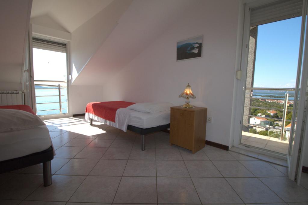 Apartamentul cu vedere frumoasa la mare este situat intr-o locatie excelenta la doar 300 de metri de mare. Apartamentul are o suprafata de 75 mp. Are două dormitoare care pot găzdui 5 adulți. Are un living. Are un pat suplimentar pentru o persoană. Are o baie cu duș. Suprafata balconului/terasa este de 12 m2. Apartamentul este situat la etajul doi al casei. Apartamentul este dotat cu TV, receptor satelit, cuptor. Parcarea este asigurata si inclusa in pret. Există un grătar în aer liber care poate fi folosit. Apartamentul este la aproximativ 1000 m de centrul orasului si la 300 m de mare sau de prima plaja din Murter. Apartamentul are o vedere frumoasă la mare, golful nisipos Slanica și insulele Kornati.