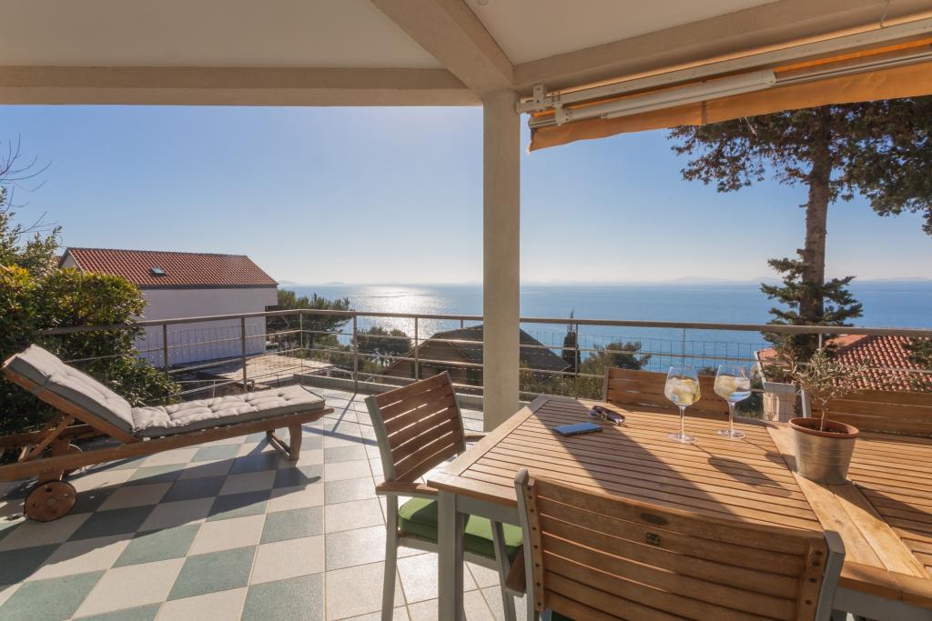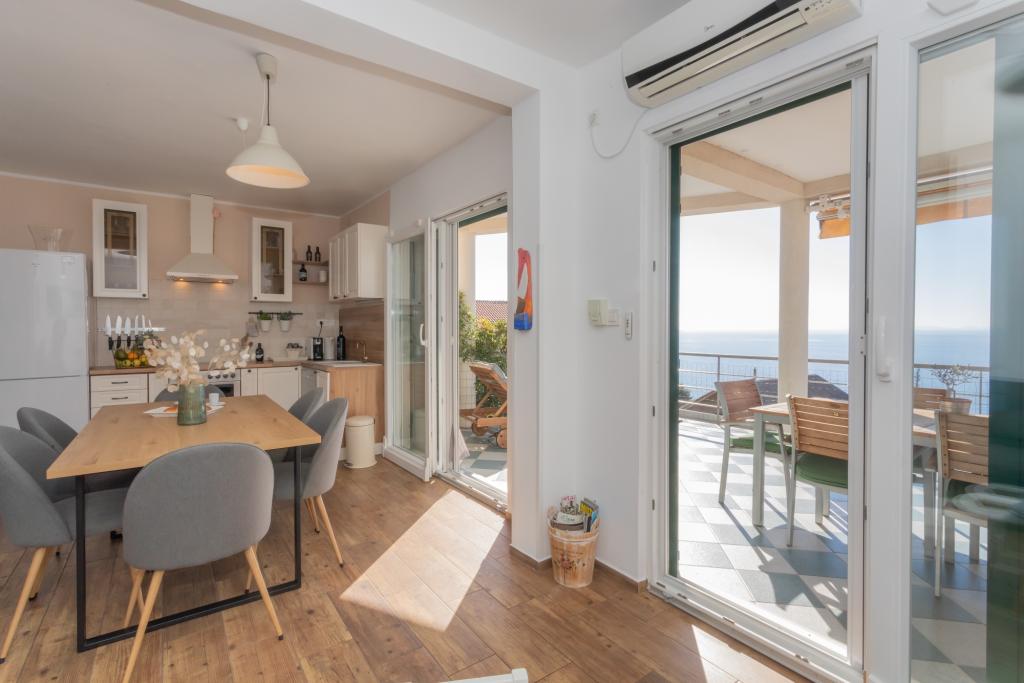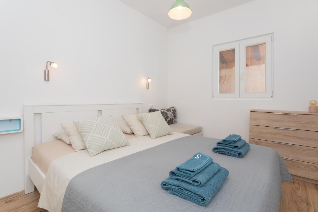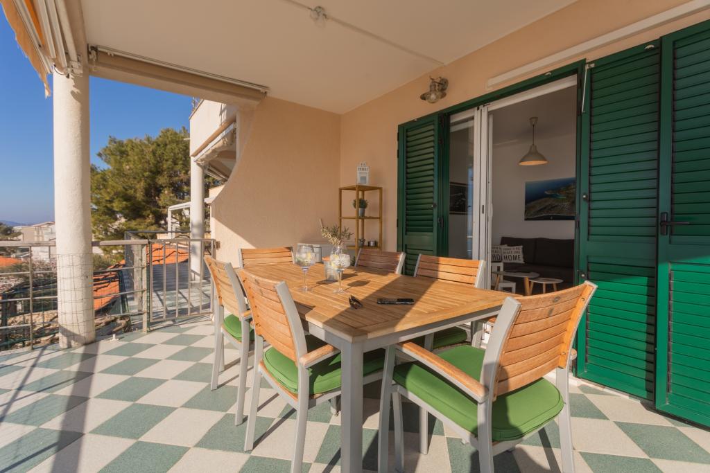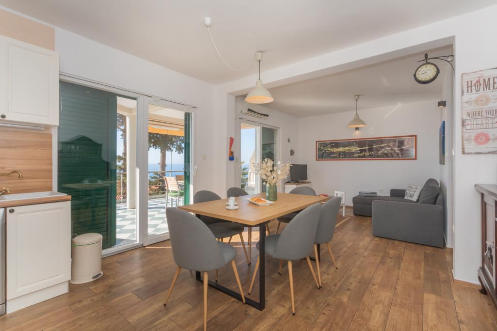 Apartament modern echipat, cu o vedere frumoasă la mare, la doar 40 m de mare, cu o suprafață de 65 m2. Apartamentul are două dormitoare pentru 4 persoane plus un pat suplimentar pentru o persoană, baie, living, bucătărie și sufragerie și o terasă frumoasă de aproape 25 m2. Apartamentul este situat la primul etaj al casei și este dotat cu TV/sat, PS 4, wi-fi, aer condiționat, încălzire, cuptor, fierbător, aparat de cafea, mașină de spălat vase, mașină de spălat rufe. Apartamentul are un grătar și o bucătărie de vară în fața intrării. Parcarea este asigurată și inclusă în preț. Apartamentul în sine este situat într-o zonă foarte liniștită din Murter, la 1100 m de centrul orașului, la 40 m de mare și plaja stâncoasă, la 300 m de plaja cu nisip și pietriș Čigrađa și la aproximativ 800 m de plaja cu nisip Slanica.