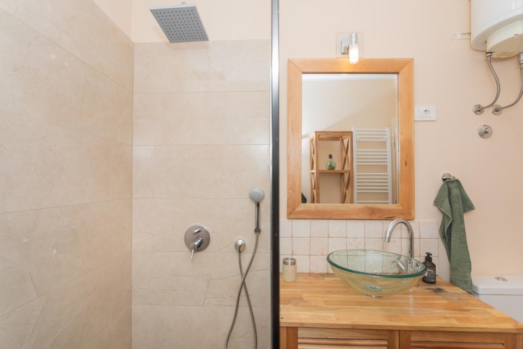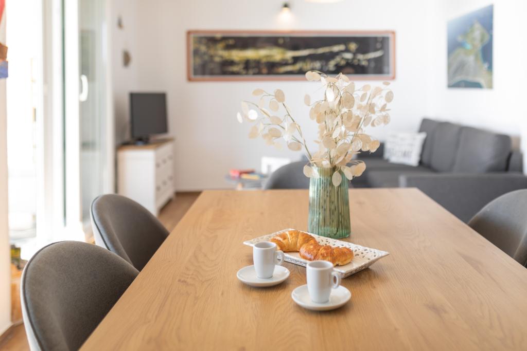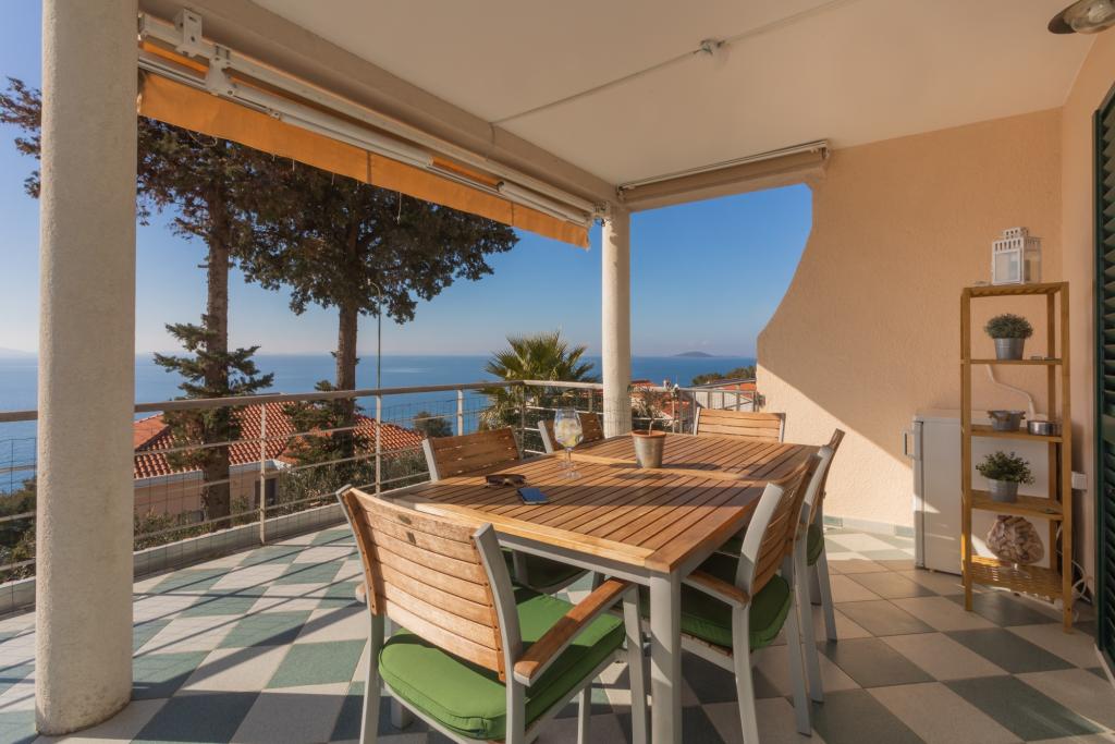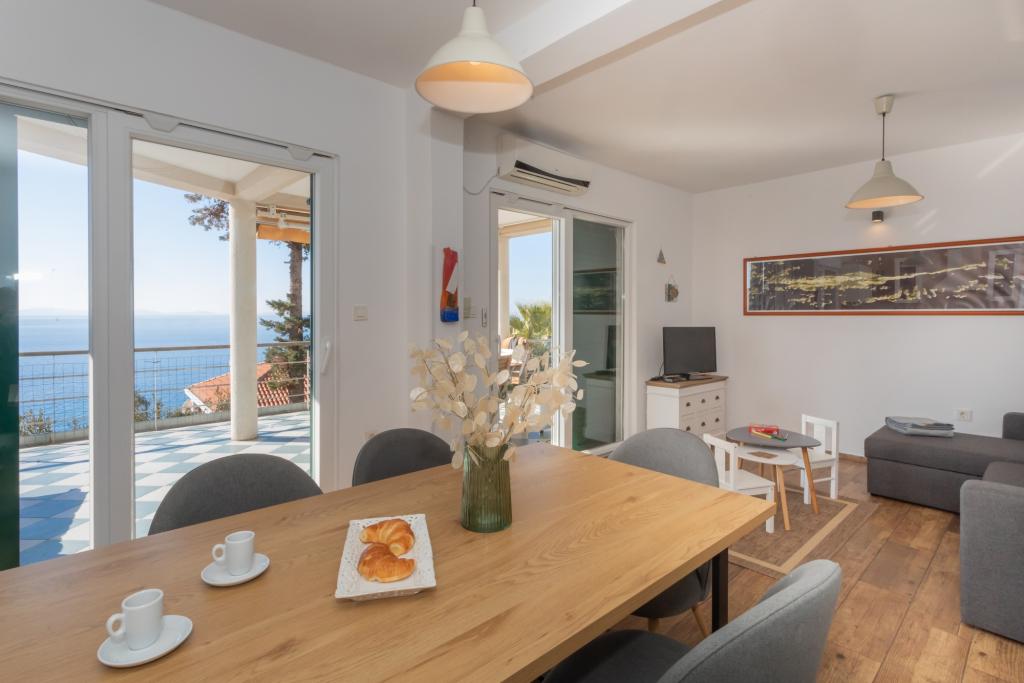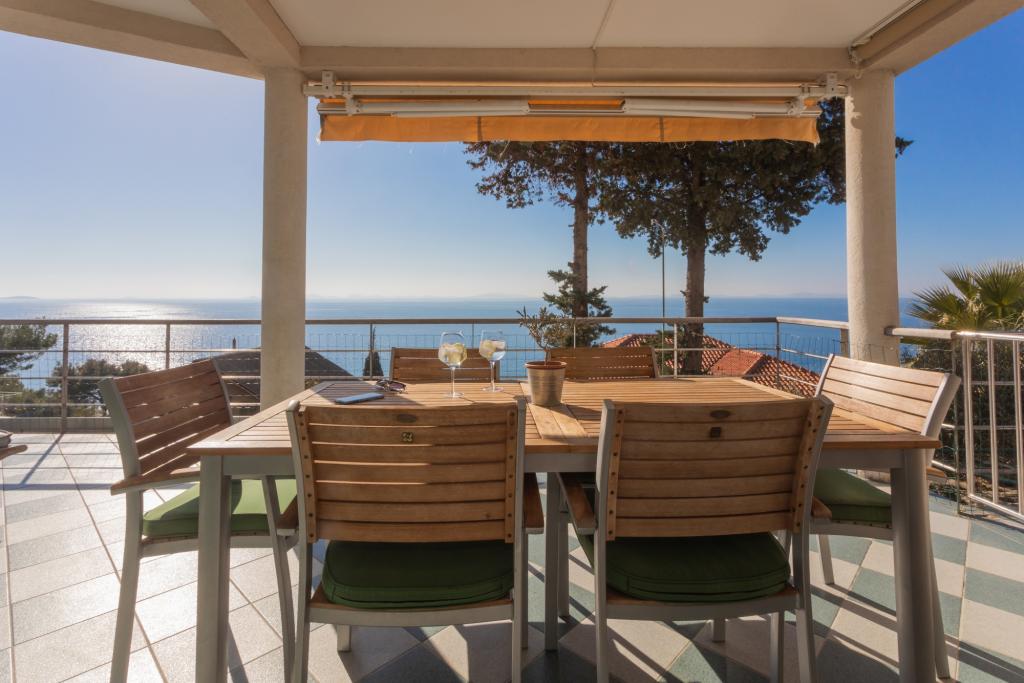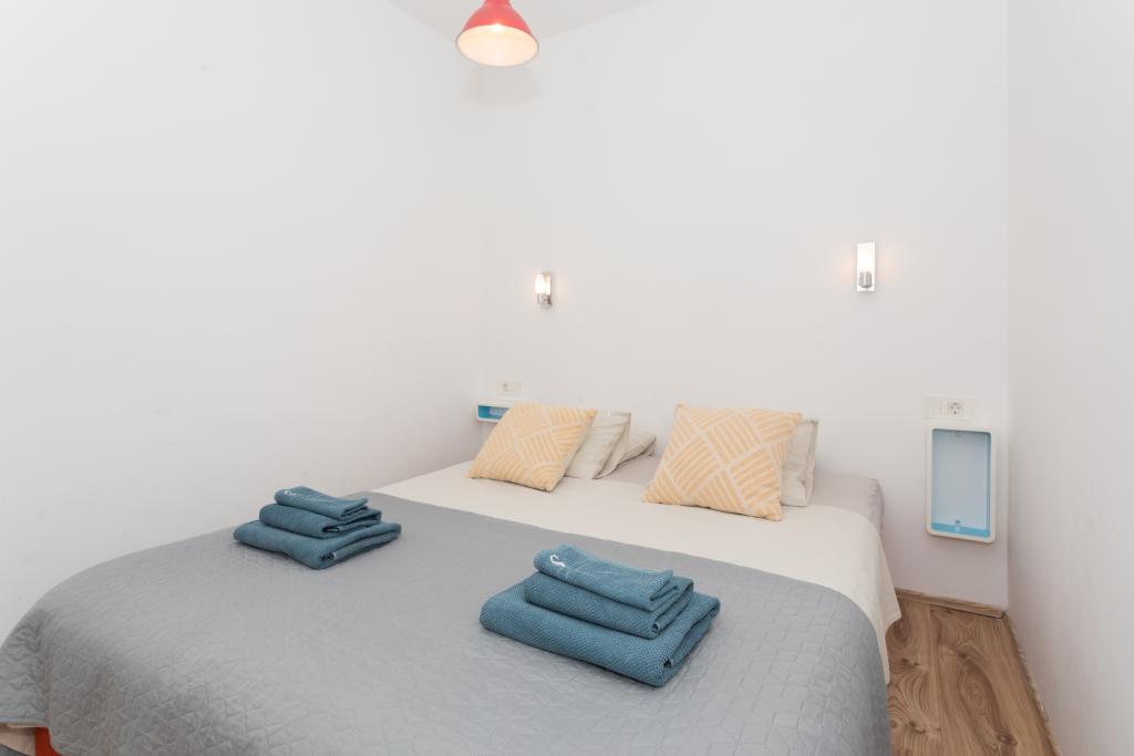 Apartament modern echipat, cu o vedere frumoasă la mare, la doar 40 m de mare, cu o suprafață de 65 m2. Apartamentul are două dormitoare pentru 4 persoane plus un pat suplimentar pentru o persoană, baie, living, bucătărie și sufragerie și o terasă frumoasă de aproape 25 m2. Apartamentul este situat la primul etaj al casei și este dotat cu TV/sat, PS 4, wi-fi, aer condiționat, încălzire, cuptor, fierbător, aparat de cafea, mașină de spălat vase, mașină de spălat rufe. Apartamentul are un grătar și o bucătărie de vară în fața intrării. Parcarea este asigurată și inclusă în preț. Apartamentul în sine este situat într-o zonă foarte liniștită din Murter, la 1100 m de centrul orașului, la 40 m de mare și plaja stâncoasă, la 300 m de plaja cu nisip și pietriș Čigrađa și la aproximativ 800 m de plaja cu nisip Slanica.