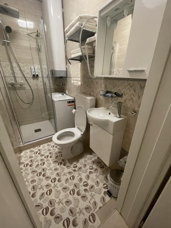 Tot ce ați putea avea nevoie se află în imediata apropiere – cafenele, restaurante, terenuri de tenis și un mic parc acvatic pentru copii. Localurile de catering sunt deschise până la ora 22:00, iar după aceea vă puteți bucura de farmecul vieții de noapte din centrul orașului Murter, care se află la doar 15 minute de mers pe jos de apartament. De asemenea, ideal pentru copii, există o stație de tren lângă apartament, care vă duce în centru în 5 minute. Rezervați-vă cazarea la timp și asigurați-vă o vacanță de neuitat la mare! O mică mențiune: fotografiile au fost făcute anul trecut și nu arată încă noul dormitor și bucătărie. Noi fotografii ale apartamentului vor fi disponibile după sărbătorile din mai.