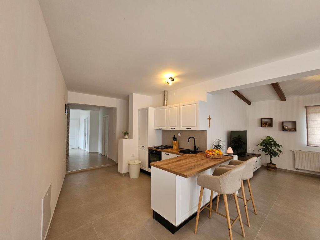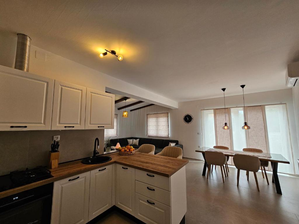 Apartamentul Una este situat în Murter, într-o locație excelentă, la doar câteva minute de mers pe jos de centru. Este situat pe o stradă liniștită, ideală pentru o vacanță relaxantă și, în același timp, aproape de restaurante, magazine și toate facilitățile importante. Acest apartament spațios oferă o bucătărie complet utilată cu zonă de luat masa, living, două dormitoare confortabile și o baie modernă. Oaspeții se pot bucura, de asemenea, de o terasă privată mare, perfectă pentru cafeaua de dimineață sau pentru socializarea de seară. Apartamentul este dotat cu aer condiționat, WiFi gratuit, televizor cu ecran plat și toate electrocasnicele necesare pentru un sejur mai lung sau mai scurt. De asemenea, este asigurată parcare privată în cadrul proprietății. Datorită apropierii de faimoasele plaje din Murter, a mării limpezi și a fermecătorului oraș vechi, Apartamentul Una este o alegere excelentă pentru familii, prieteni și oricine își dorește o vacanță fără griji în Murter.