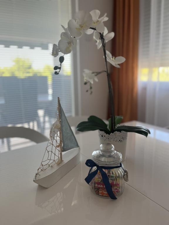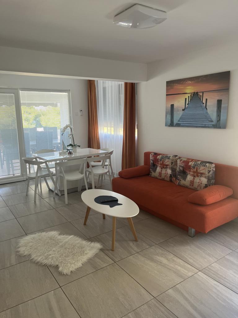 Apartamentul este modern, perfect utilat, curat, parfumat. O terasă confortabilă cu șezlonguri și un tufiș de rozmarin parfumat. Parcare lângă casă. Plaja cu sezlonguri. Ai ocazia să te relaxezi la umbra pinii sau chiar lângă apă. Abordarea proprietarilor: Doamna Martina si mama ei este primitoare si amabila. Au răspuns prompt la toate întrebările și solicitările noastre. Ne-am bucurat din plin de șederea noastră. Cu siguranta vom reveni. Vă mulțumim.
