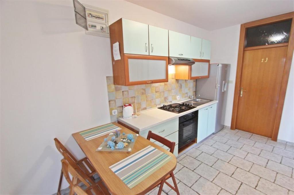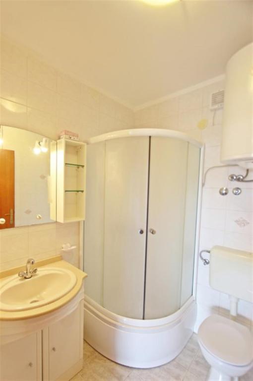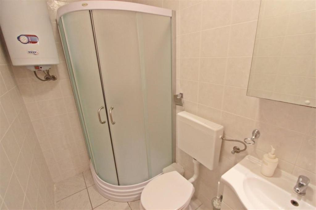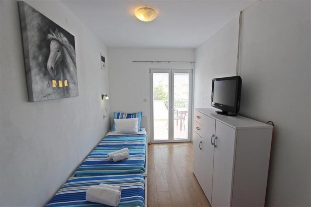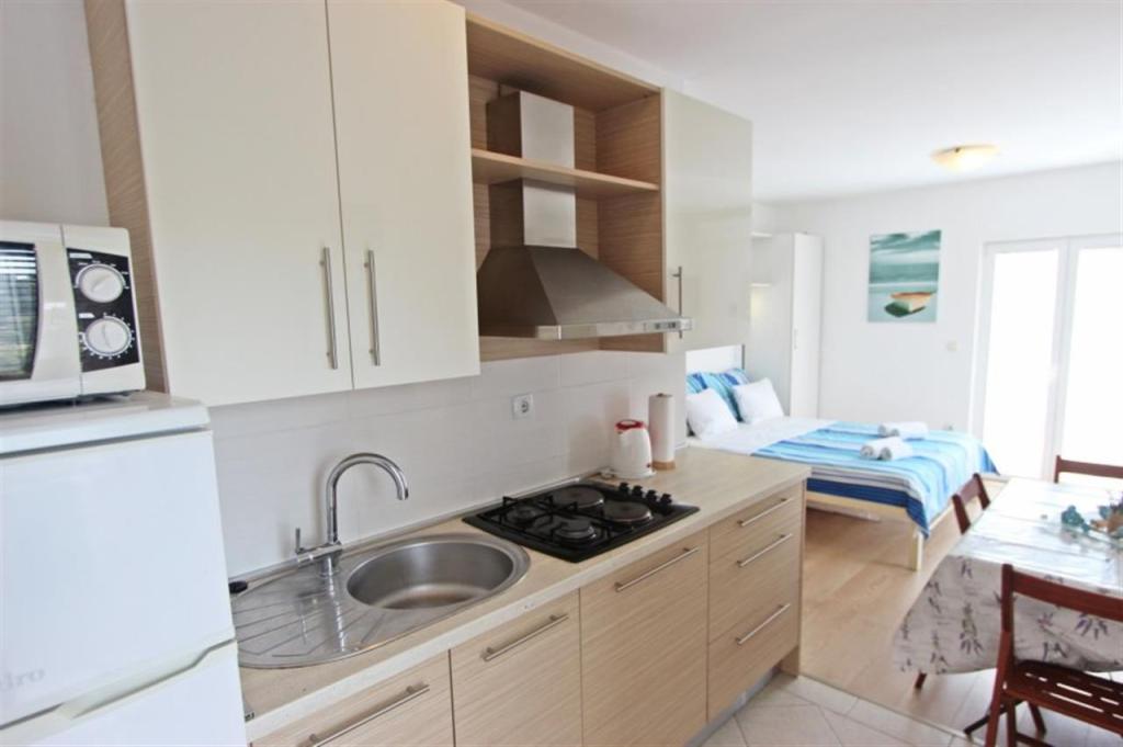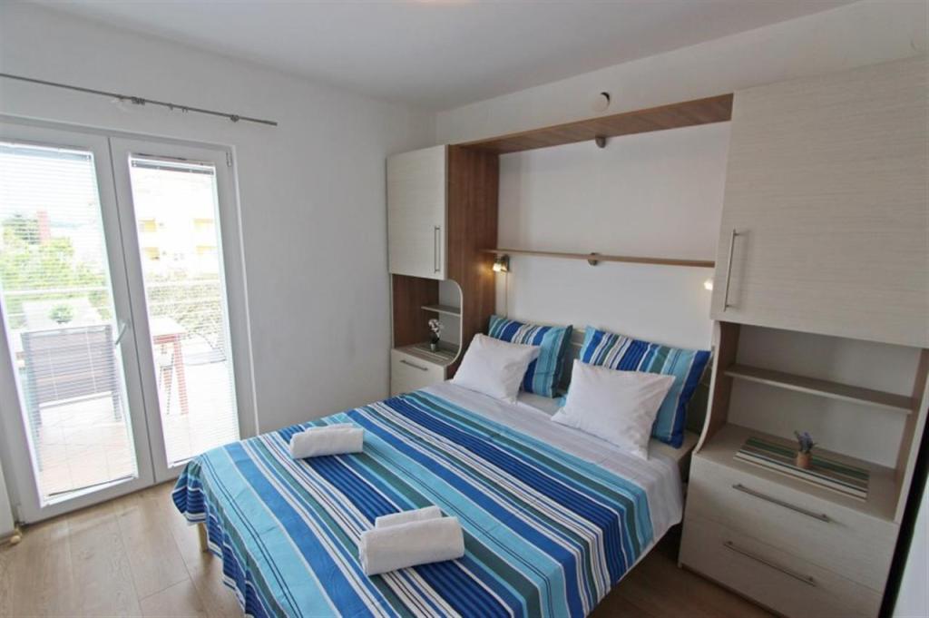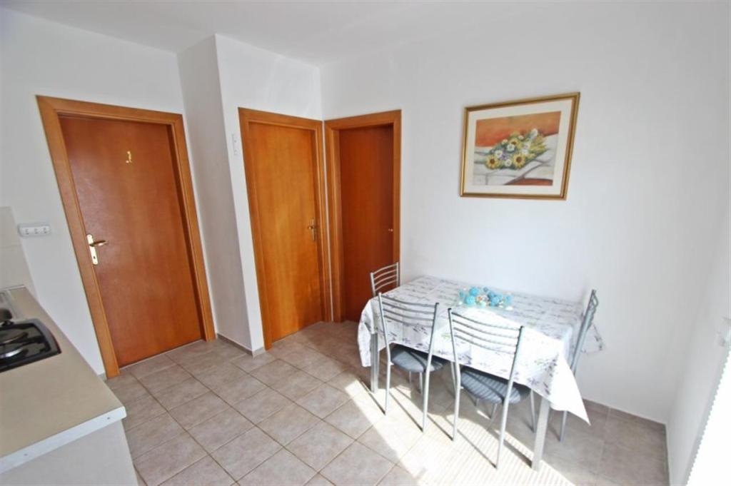 Apartamente pentru patru persoane 2 + 2 sau garsoniere 2 + 1. Acestea constau dintr-un dormitor (un pat dublu) si o camera cu doua paturi de o persoana (dimensiuni 200x90) sau un dormitor si un pat in living, in timp ce garsonierele constau dintr-un pat dublu cu pat suplimentar, bucatarie, baie si terasa mare. (15m2 / 18m2). De asemenea, la parter se afla o camera cu masina de spalat rufe pe care oaspetii o pot folosi. Apartamentele sunt dotate cu televizor si aer conditionat, wi-fi, cuptor cu microunde si frigider cu congelator. In fata apartamentului avem un gratar exterior pe care oaspetii il pot folosi oricand. Parcarea este asigurata si situata in curte. Distanța până la prima plajă și magazine este de 250 m, iar centrul este la 1 km