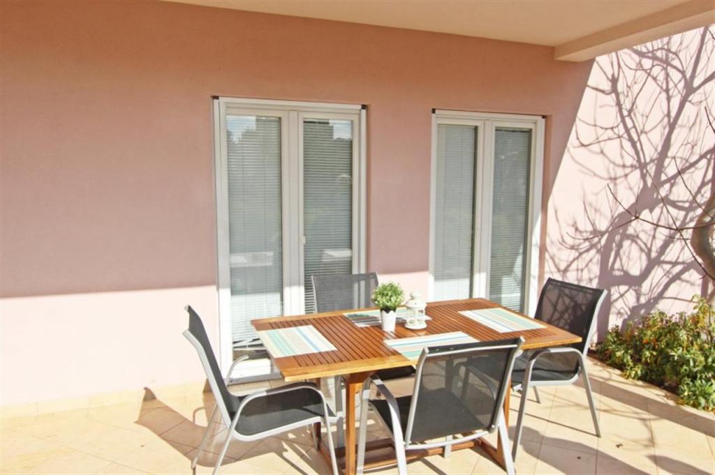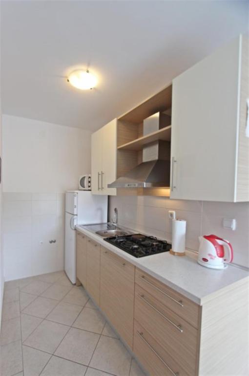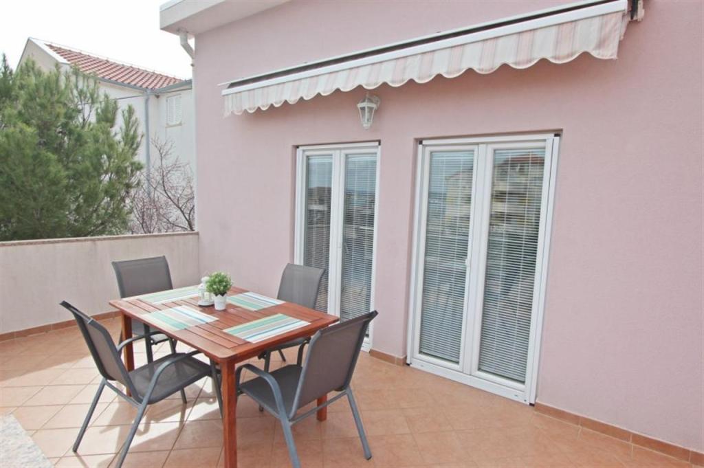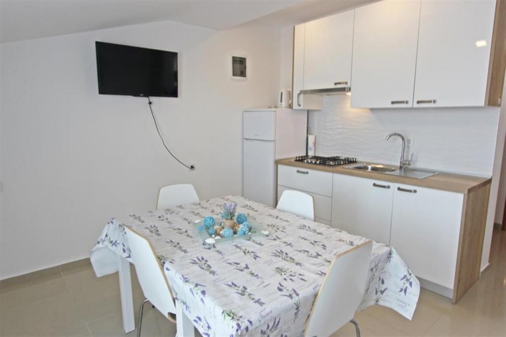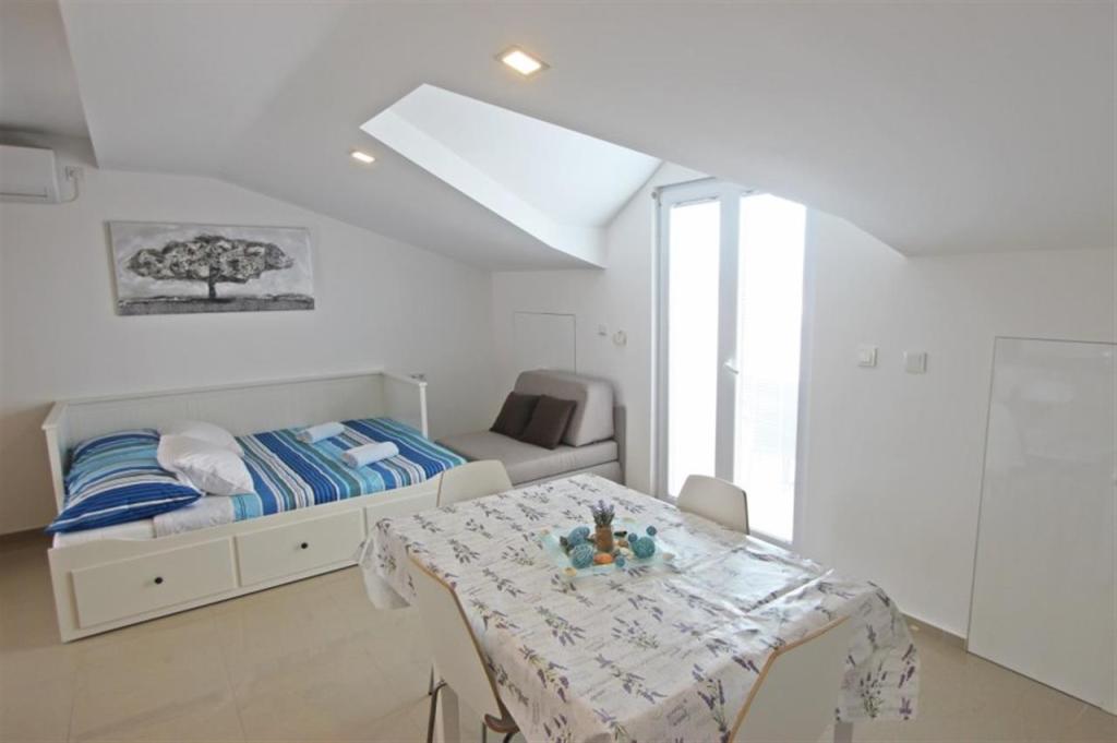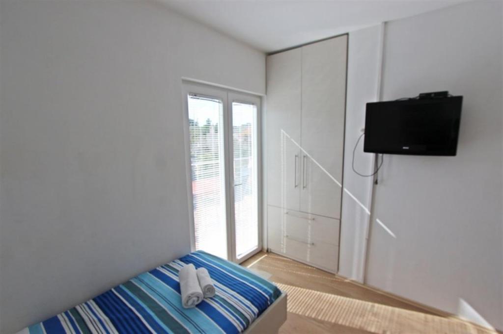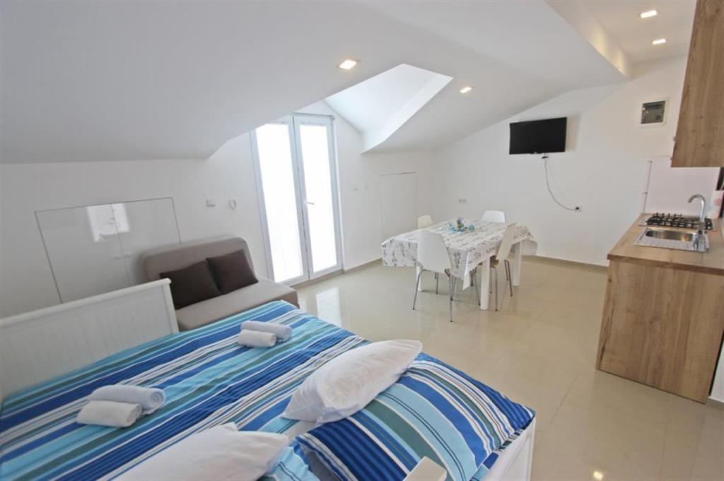 Apartamente pentru patru persoane 2 + 2 sau garsoniere 2 + 1. Acestea constau dintr-un dormitor (un pat dublu) si o camera cu doua paturi de o persoana (dimensiuni 200x90) sau un dormitor si un pat in living, in timp ce garsonierele constau dintr-un pat dublu cu pat suplimentar, bucatarie, baie si terasa mare. (15m2 / 18m2). De asemenea, la parter se afla o camera cu masina de spalat rufe pe care oaspetii o pot folosi. Apartamentele sunt dotate cu televizor si aer conditionat, wi-fi, cuptor cu microunde si frigider cu congelator. In fata apartamentului avem un gratar exterior pe care oaspetii il pot folosi oricand. Parcarea este asigurata si situata in curte. Distanța până la prima plajă și magazine este de 250 m, iar centrul este la 1 km