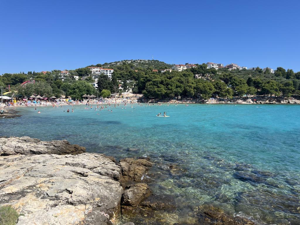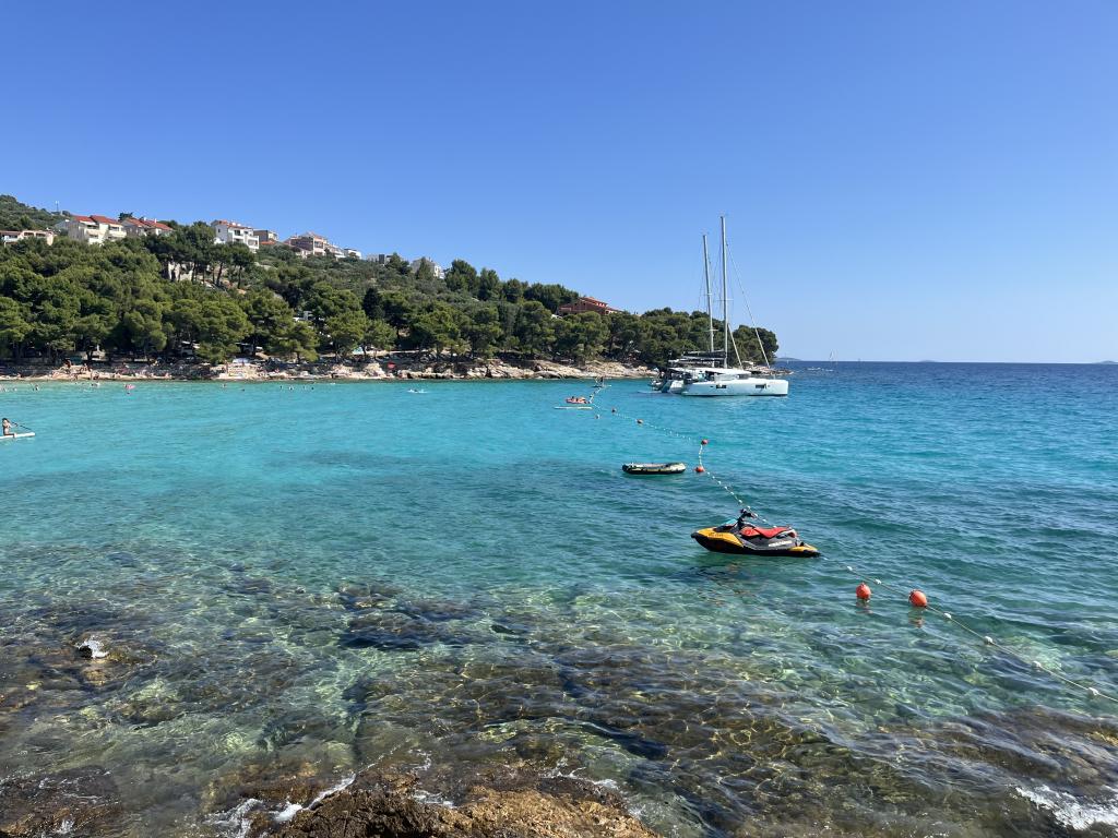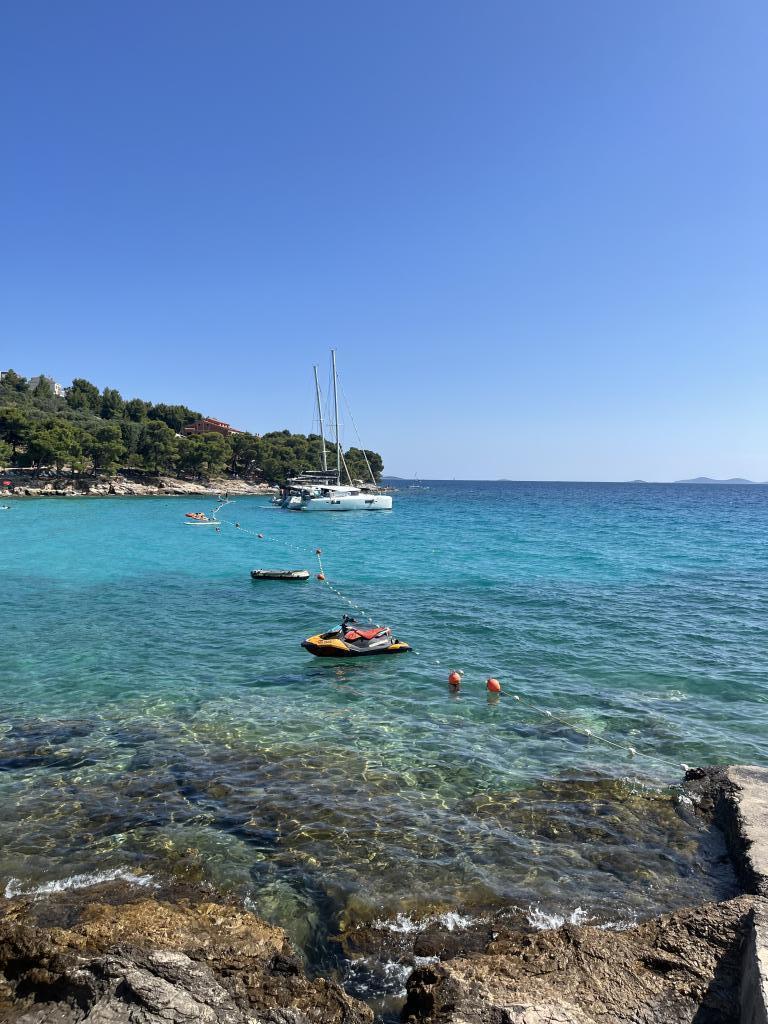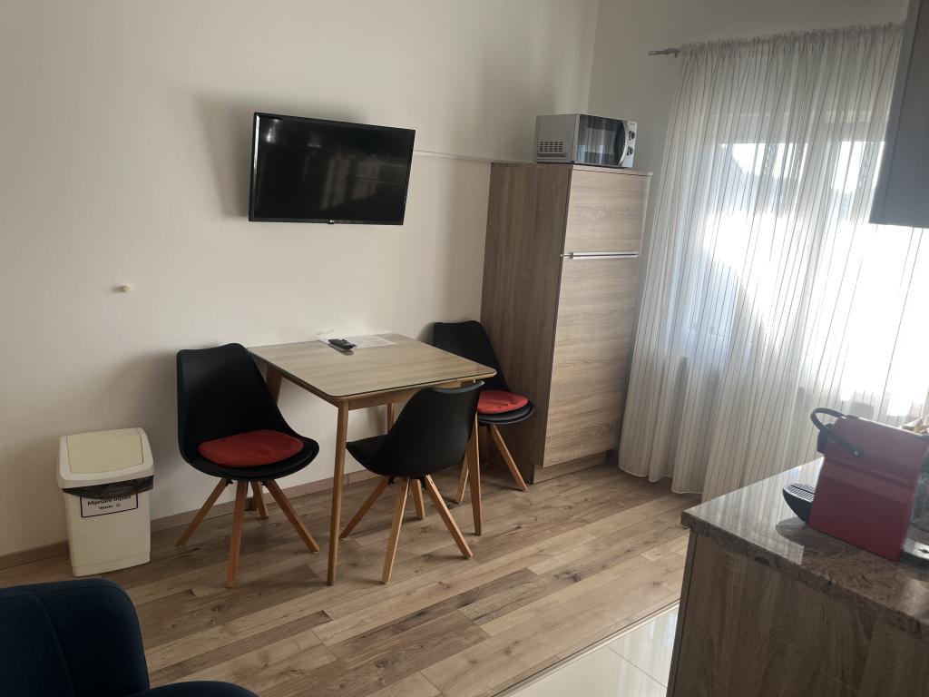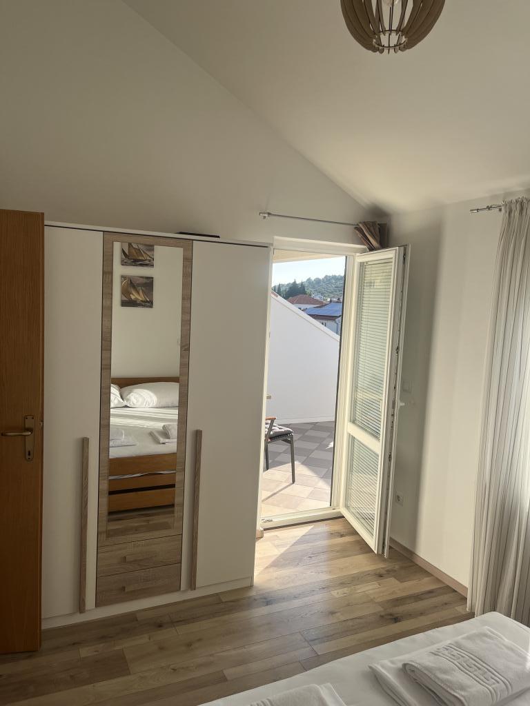 Centrul orașului Murter - un oraș mic pentru o vacanță minunată. Bine ați venit la apartamentele Blue Pearl, într-o locație excepțională în centrul orașului Murter! Noile apartamente Blue Pearl sunt situate într-o locație liniștită în centrul orașului Murter și la 10 minute de cele mai frumoase plaje de pe insula Murter. Locația și priveliștea uimitoare din apartament sunt alegerea perfectă pentru oricine caută o vacanță relaxantă și liniștită pe plajele din apropiere ale insulei Murter. Apartamentele oferă o atmosferă plăcută și o terasă pentru relaxare și bucuria priveliștii. Prețurile includ chiria pentru 2 persoane, iar prețul include taxa de turist, loc de parcare și Wi-Fi gratuit. Apartamentul are un dormitor cu pat dublu și o terasă dotată cu zonă de relaxare, o baie, un living cu bucătărie și o sufragerie. Apartamentul oferă lenjerie de pat, prosoape, vase, cuptor cu microunde și aparat de cafea. Oaspeții se pot bucura de grătarul exterior acoperit, situat într-o casă pitorească din piatră. Apartamentul are un pătuț pliant pentru cei mici.