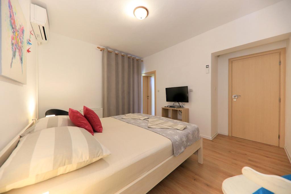 Apartamentele Filip sunt situate în Murter, pe insula Murter. Situat într-o zonă liniștită a orașului, vă va oferi odihnă și liniște. Toate apartamentele sunt recent renovate, au aer condiționat, au ceainic, filtru de cafea și parcare păzită în fața casei. Aproape toate oferă o priveliște frumoasă asupra mării, a insulelor Kornati și a golfului Murter din Hramina. Apartamentele sunt situate langa plaja Slanica - la 5 minute de mers pe jos, si la aceeasi distanta de plaja proaspat renovata Luka. Dacă aveți nevoie de mai multe informații despre cazare în sine, locul Murter, nu ezitați să ne contactați prin intermediul aplicațiilor WhatsApp și Viber