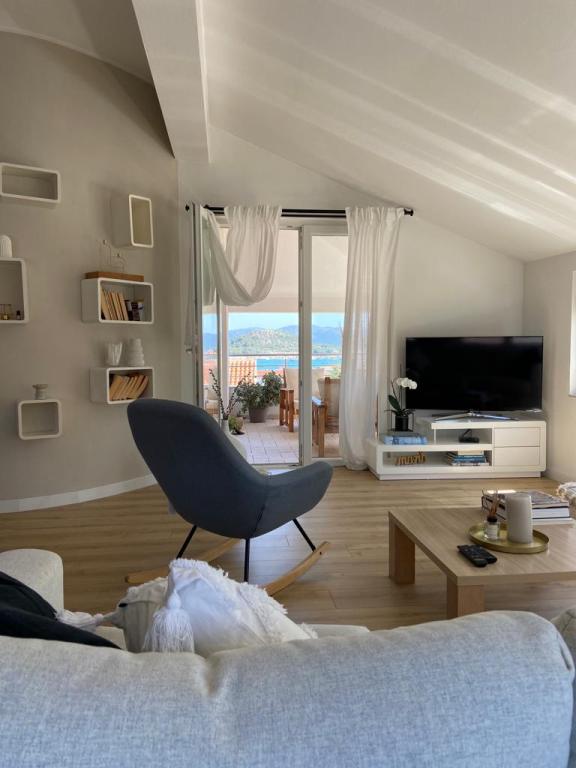 Apartamentele sunt situate într-o zonă liniștită din Murter, la 5 minute de mers pe jos de centru, plajă și magazine. Complet mobilat cu vedere la mare.