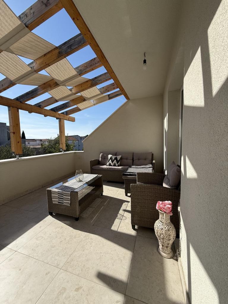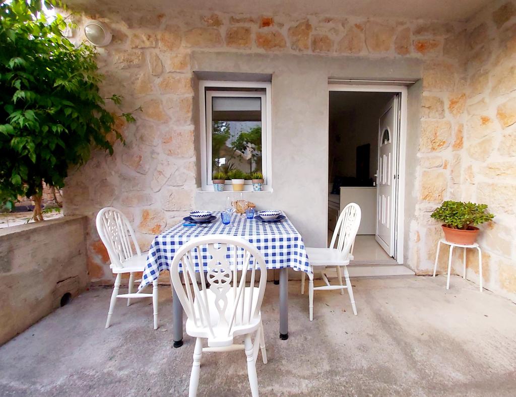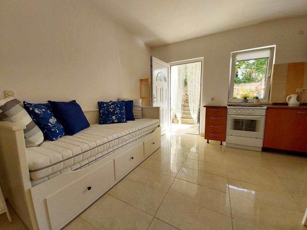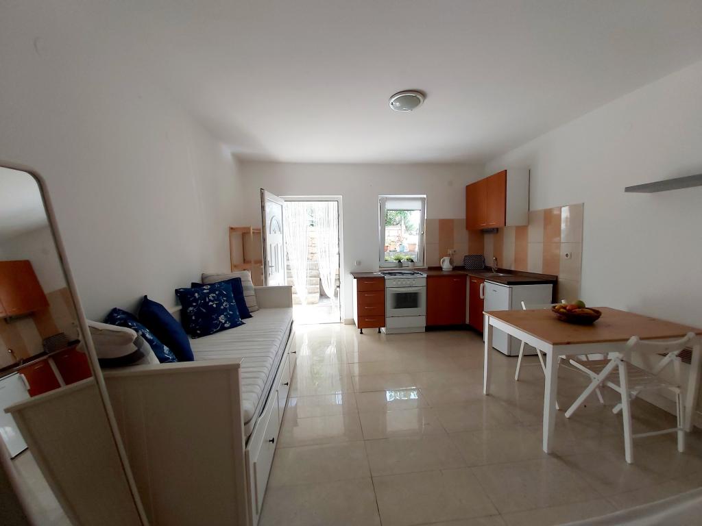 Apartament studio cu terasă de 12m2. Apartamentul este conceput pentru 2 persoane. Pat dublu mare, bucătărie complet utilată, masă, baie. Terasă și masă. Loc de parcare securizat în fața apartamentului pentru un vehicul. Aproape de plajă. Apartamentul se află la 5 minute de mers pe jos de plaja Slanica și la 7 minute de mers pe jos de centrul orașului Murter.