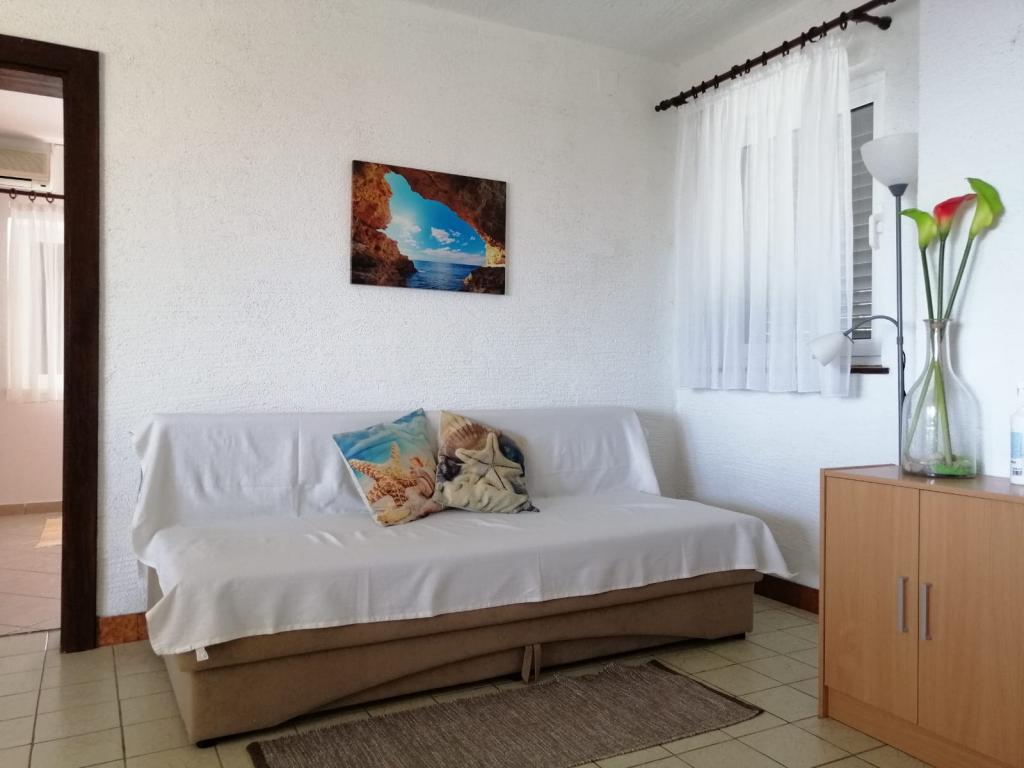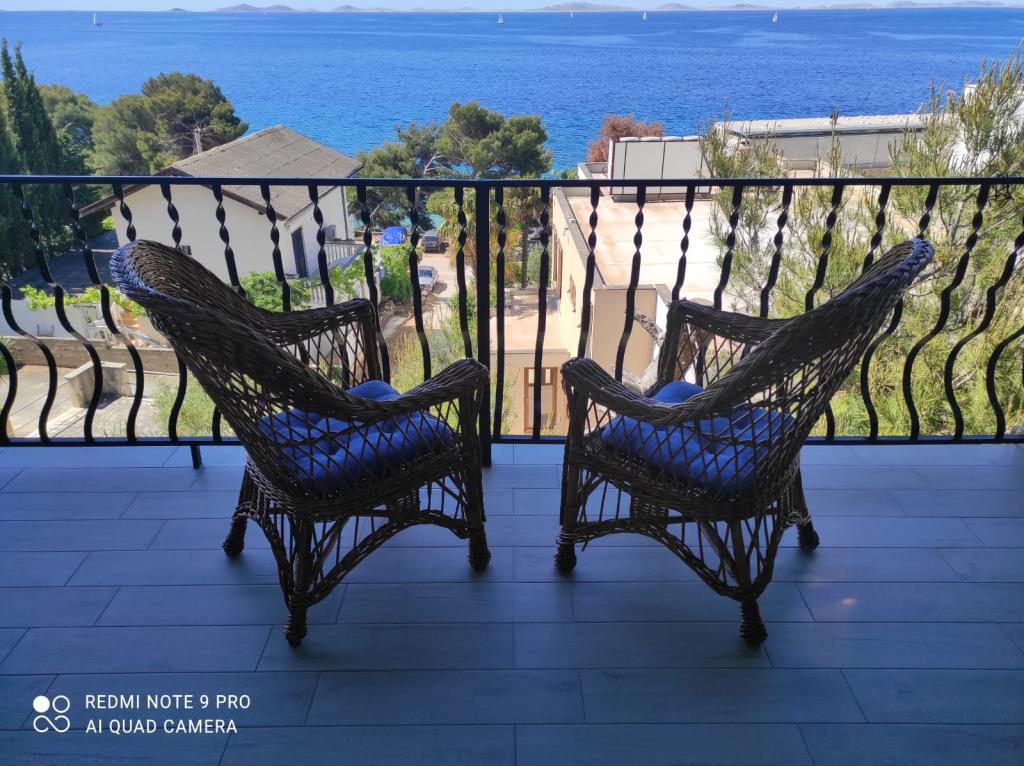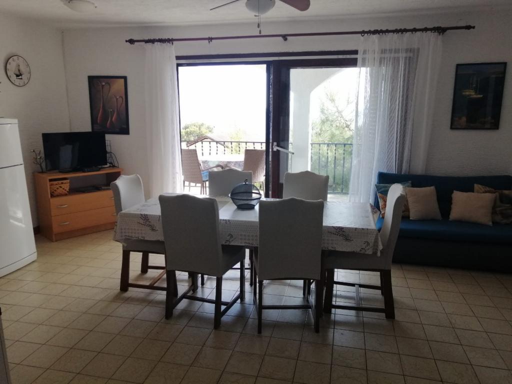 Apartamente complet mobilate modern într-o zonă liniștită a insulei Murter, situate la 2 rânduri spre mare. Proprietatea este la 5 minute de mers pe jos de plaja principală din Slanica și la 20 de minute de mers pe jos de centru. Sub casă este o plajă stâncoasă, dar și un golf cu pietricele mici pentru copii. Parcul național Kornati are vedere la terasa proprietății.