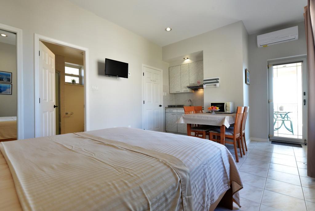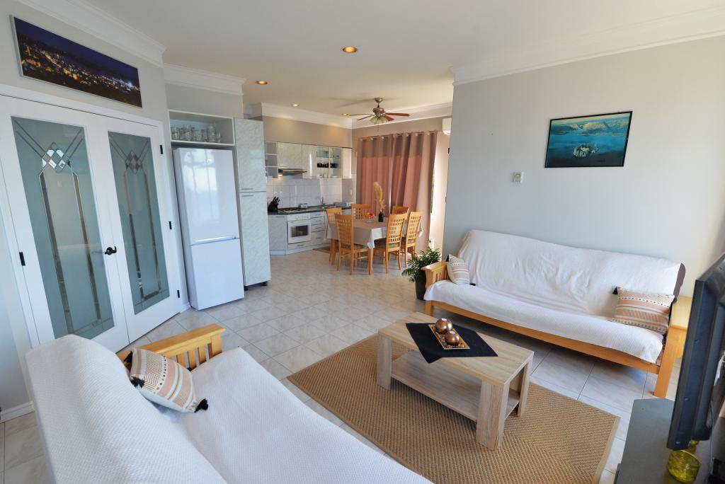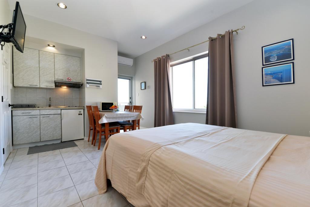 Clădirea este frumoasă, la fel ca în poză, locația este excelentă, deoarece plaja este chiar peste drum, iar în apropiere există și un golf cu baruri care servesc mâncare și băuturi. Pentru a merge la magazin sau în oraș, este necesară o bicicletă sau o mașină. Garsoniera este potrivita pentru doua persoane, curata si bine intretinuta. În bucătărie lipsea un aragaz și o scândură de tăiat, iar în baie lipsea un mop și o mătură. Nu exista nici un uscător pentru costume de baie și prosoape, acestea pot fi agățate pe balustrada balconului. Balconul este comun cu camera vecină. Gazda este prietenoasă și discretă. Recomand inchirierea unei garsoniere!