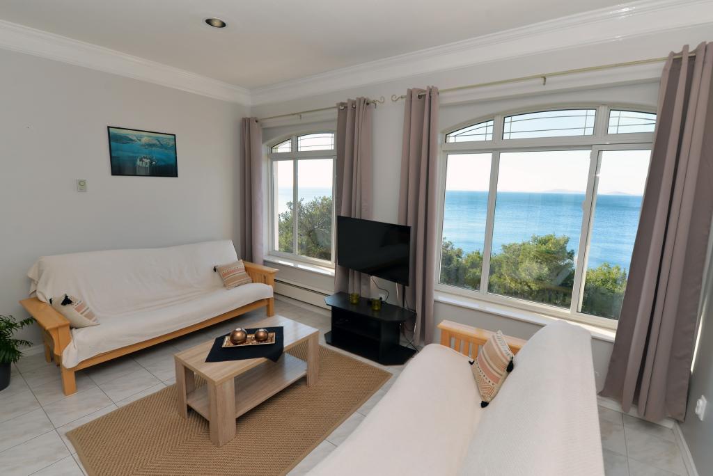 Vedere frumoasă, gazdă drăguță și de ajutor, tot ce ai nevoie în apartament, nu ne-a lipsit nimic, stradă liniștită... Marea este chiar peste drum, plajă stâncoasă, plaje cu pietriș în apropiere, restaurante. Am fost cu toată familia, îl recomand cu căldură.