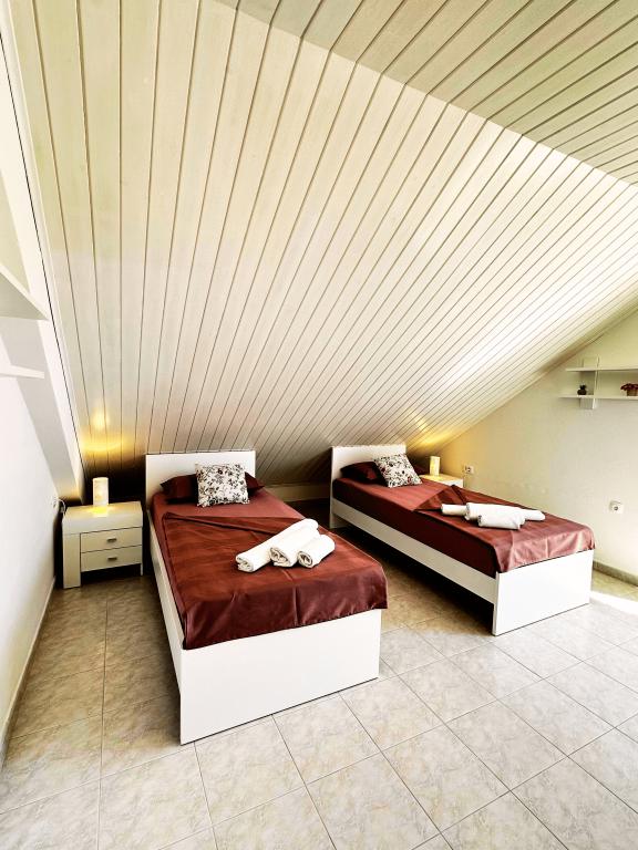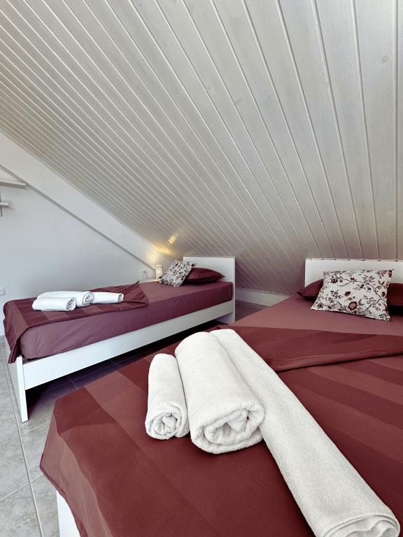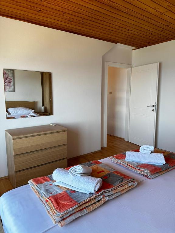 Fără îndoială că, apartamentele noastre sunt printre cele mai bune din Murter, de dorit, din cauza frumoasa vedere, locație atractivă și confort, dar, de asemenea, din cauza inimilor noastre deschise și ospitalitate. Sunetul valurilor, mirosul mării și frumoasa vedere a parcului Kornati Murter Arhipelagul National, va face vacanța experiența dumneavoastră frumoasă și de neuitat pentru întreaga familie. Verdeata, gradina casa mare, pace și casa la doar 150 de metri de mare și de plaje BRINE este principalul motiv pentru oaspeții noștri să viziteze și să vină înapoi în fiecare an. În casă sunt 3 apartamente închiriate. Un apartament de mare pentru 4 persoane AP (4 1), cu 2 dormitoare, living, sala de mese, bucatarie si baie, si doua apartamente mai mici, cu 1 dormitor, 1 baie si camera de zi cu bucatarie: AP 1 (2 1) și AP 2 (2 1). Fiecare apartament are o terasă cu vedere la mare.
