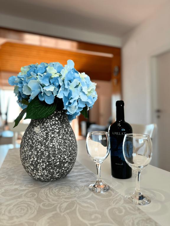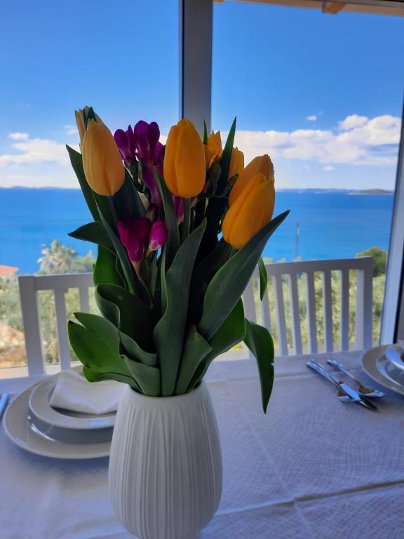 Vedere fabuloasă asupra insulelor Kornati, în special apusurile de soare sunt uimitoare, apartament curat, bine echipat, la 5 minute de mers pe jos de plaja Slanica. Gazda a fost foarte amabila si de ajutor. Il recomand tuturor din toata inima.