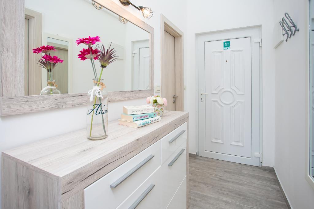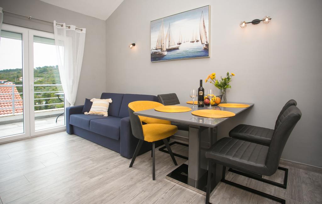 Apartamentul este situat în golful Necujam de pe insula Solta. Apartamentul este nou, constă dintr-o cameră cu un pat dublu, o cameră cu două paturi de o persoană, living cu canapea extensibilă, baie și este complet echipat cu tot ceea ce este obișnuit și necesar (lenjerie de pat, prosoape, vase, fier de călcat, mașină de spălat , cuptor cu microunde, seif, TV, DVD, WI-FI, aer condiționat, grătar). Clădirea este situată în al doilea rând spre mare, priveliștea de la balcon este spre mare, este oferit loc de parcare. Magazinul este situat la aproximativ 100 de metri și o plajă cu pietriș, potrivită pentru copii și adulți. Lângă plajă se află un teren de volei, tenis de masă. Prețul include utilizarea aerului condiționat. Alegând apartamentul nostru veți obține cu adevărat cazarea care este afișată și pe acest site.