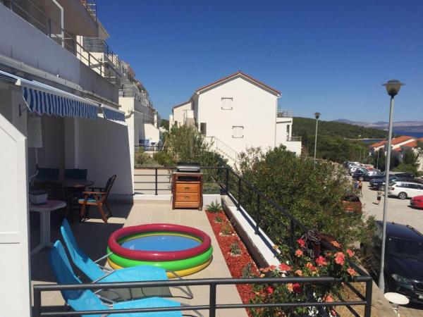 Apartament IRIS este modern și bine amenajat un apartament. Acesta oferă oferte: aer conditionat, cuptor, grătar, mașină de spălat vase, mașină de spălat, fier, uscător de păr, prăjitor de pâine, lenjerii de pat și prosoape. Din Golful Necujam este situat într-un mediu liniștit ideală pentru vacanțe de familie. În stațiune aveți un magazin, produse de panificație, magazin de fructe, restaurante și cafenele. Nečujam se caracterizează printr-o plajă cu pietriș mare, de apă și de divertisment clare activități cum ar fi volei pe plaja, parc acvatic, piscine în aer liber pentru copii și adulți ...