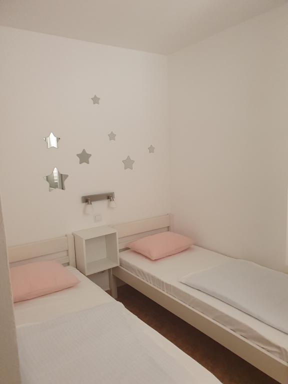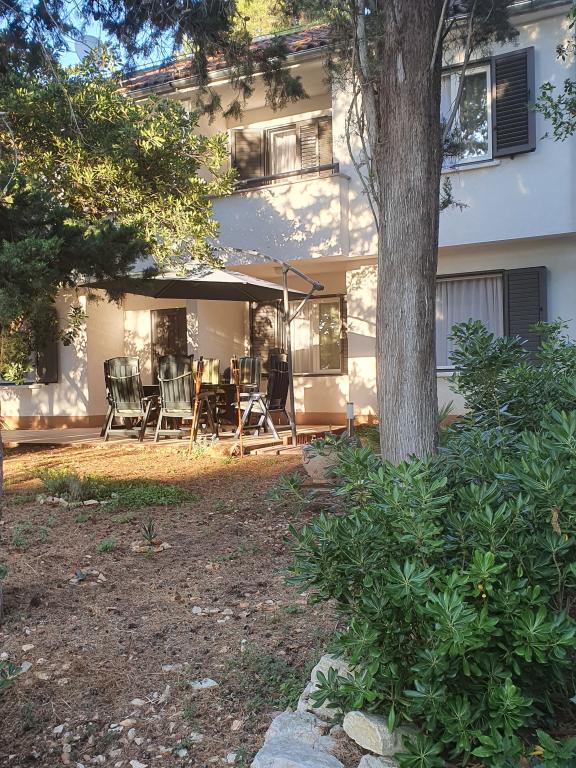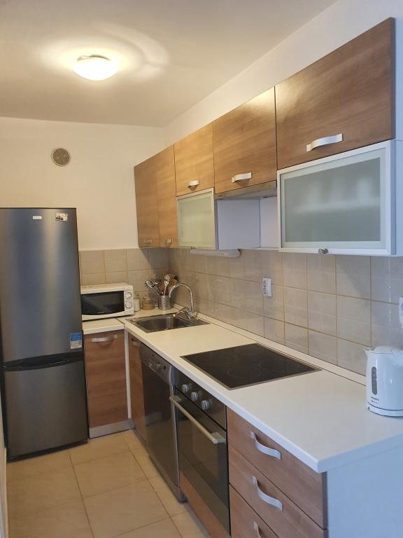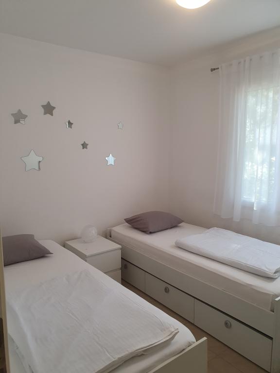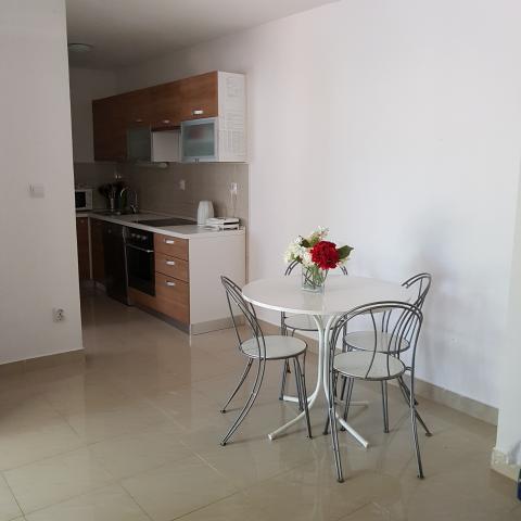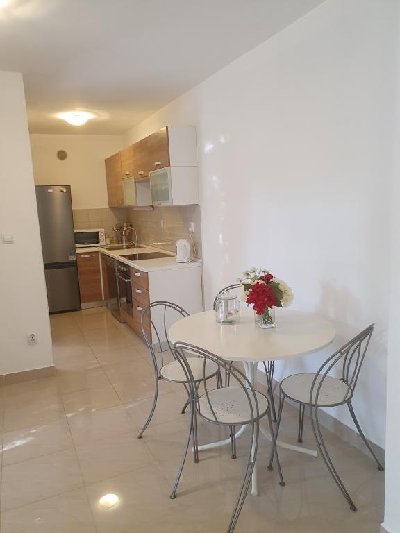 Apartamente complet echipate și decorate pentru un sejur confortabil pentru până la 6 persoane, situate într-o pădure de pini. Apartamentele sunt la 3 minute de mers pe jos de mare și de o plajă frumoasă la care se poate ajunge printr-o pădure de pini. Apartamentele sunt compuse din două camere - una cu pat dublu și alta cu două paturi de o persoană, un living cu o canapea extensibilă și un televizor LCD, o sufragerie (apartament mai mare - creat prin adaptarea a două apartamente mai mici într-un apartament mare de 60 m2), o baie, o bucătărie completă cu electrocasnice precum ceainic, o mașină de cafea (mașină de spălat și vase în terasa mai mare, apartament cu grătar). Fiecare dintre apartamentele noastre este dotat cu lenjerie de pat, prosoape, ustensile de bucatarie si electrocasnice necesare pentru sejurul dumneavoastra lin. Mediul de ansamblu (pădurea de pini, apropierea și amenajarea plajei și a mării, protecția promenadei de la șosea) reprezintă un mediu ideal pentru relaxare și o vacanță în familie cu copii mici sau un animal de companie.