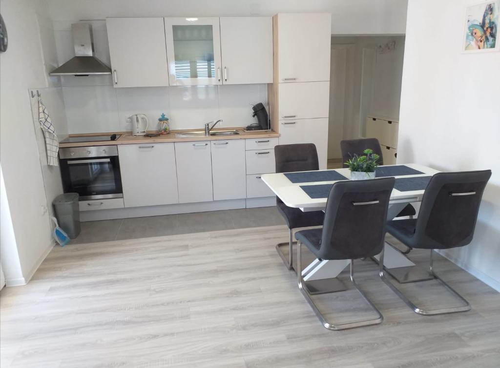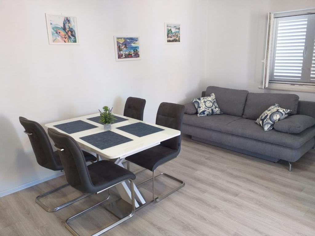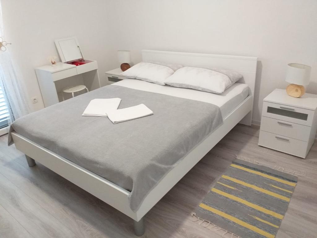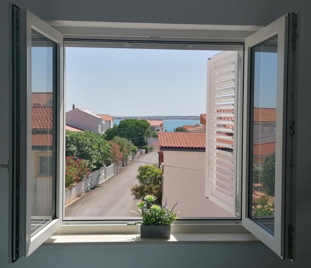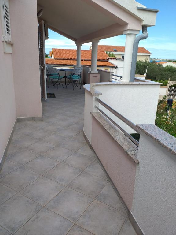 Apartamente în Vrsi Mulo (4 km Nin, 20 km Zadar), modern dotate, cu o terasă spațioasă, vedere la mare, la 200 m de plaja Mulo. - apartament mobilat modern (40 m2 + terasă 15 m2) cu 1 dormitor - intrare separată - parcare privată - terasă spațioasă cu vedere la curte, mare și munte - ieșire pe terasă din living și dormitor, gard de siguranță pe scări - apartament complet echipat (basic + aer condiționat, wifi, TV prin satelit, mașină de spălat vase, mașină de spălat rufe, fier de călcat, uscător de păr, plasă de țânțari, aragaz, aparat de cafea, pătuț de călătorie pentru bebeluși, lenjerie de pat, prosoape, produse de curățenie) - foișor cu grătar și duș exterior pentru uz comun