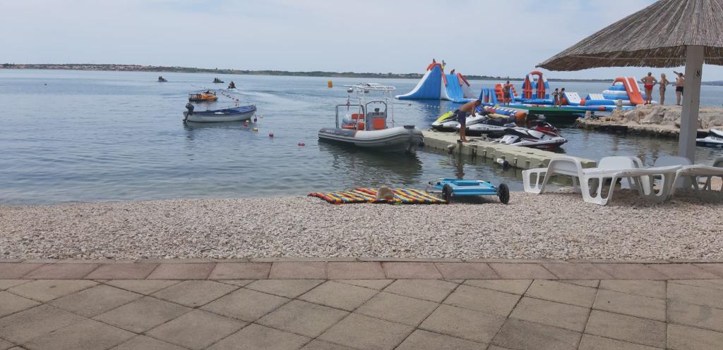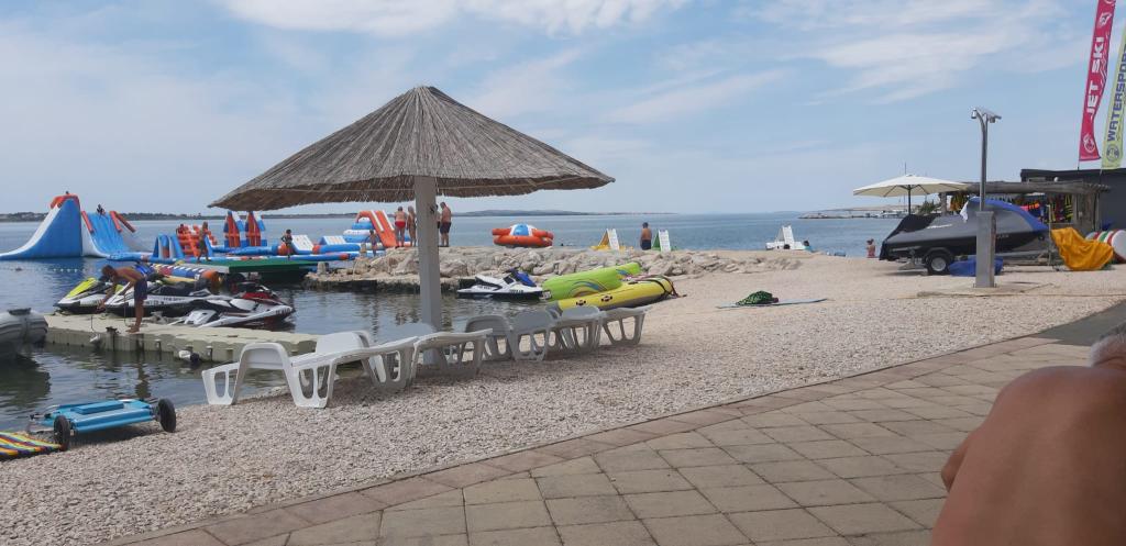 Apartamentul „Idi pa Vidi” este situat în Vrsi, lângă Nin (distanță 4 km), iar distanța de Zadar este de 23 km. De Zagreb este la 2,5 ore de mers cu mașina. Oferim 2 apartamente cu intrări separate. Municipalitatea Vrsi are 14 plaje, în timp ce cea mai apropiată plajă se află la 320 m de apartament. Plajele din Vrsi sunt în mare parte nisipoase și cu pietriș (cea mai faimoasă plajă este lângă Ričin). La câțiva pași se află un supermarket, o piață, o brutărie, restaurante, o măcelărie și un parc de distracții. Casa este situată pe o stradă fără ieșire, cu o curte amenajată cu iarbă, iar oaspeții au la dispoziție un duș în aer liber și un grătar. Apartamentul de la primul etaj are un living cu terasă și vedere la mare și este împărțit pe două niveluri. Primul nivel are 2 dormitoare (unul dintre ele cu pat dublu, iar a doua cameră cu balcon are un pat supraetajat (cu 2 paturi) și o baie, în timp ce al treilea dormitor (care are și o toaletă) este situat la galeria apartamentului. Apartamentul poate găzdui maximum 7 persoane.