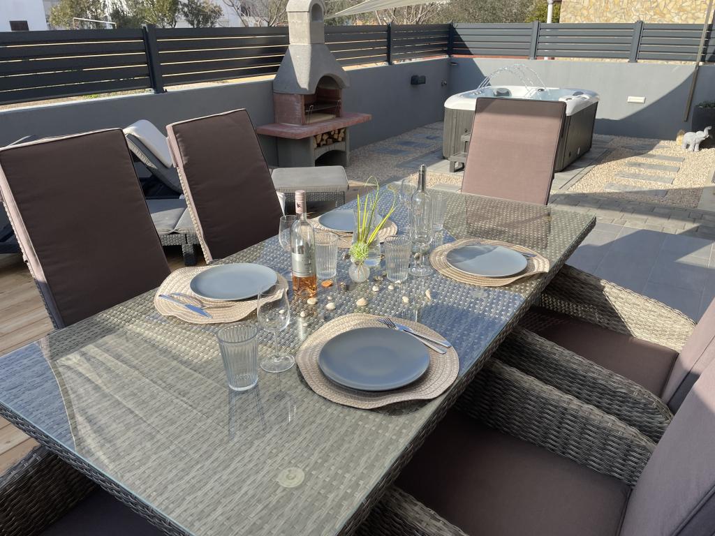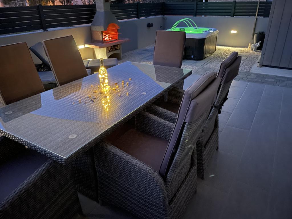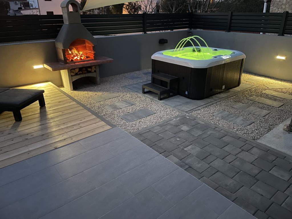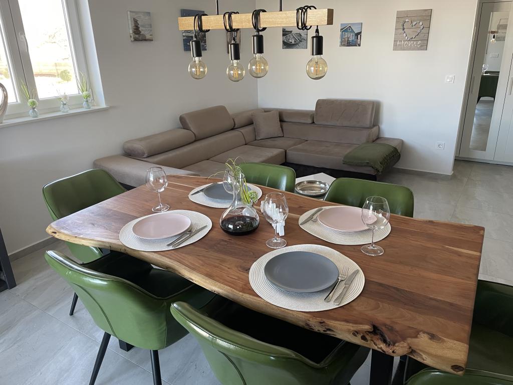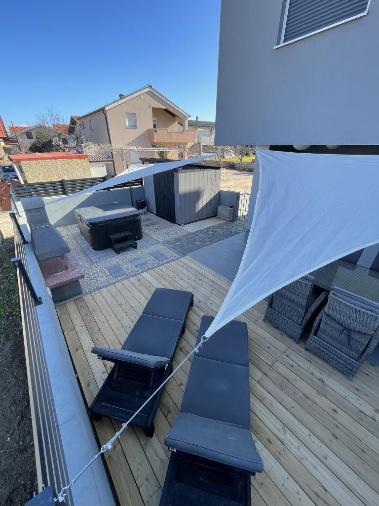 LE Stan, Ulica 4C Vrsi, Croatia Tip Exclusiv / Casa de vacanta Cazare 6-8 > dormitor oaspeti 3 dormitoare / 3 paturi baie 2 bai Confortul intalneste eleganta Petrece-ti vacanta in Croatia cu Apartament LE si bucura-te de o vacanta placuta intr-o atmosfera de familie. Vă puteți aștepta la facilități premium și la spațiu în aer liber elegant, inclusiv o cadă cu hidromasaj încălzită. Plaja este usor accesibila pe jos (cca. 150 m). Câinii sunt bineveniți în apartamentul LE! Orașul Vrsi este aproape de Nin și Zadar.