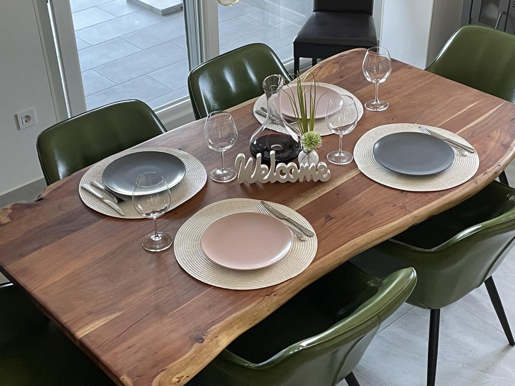 Dotare Apartament LE 87m² suprafata de zi • Parcare langa casa • Lenjerie de pat completa • Patut de voiaj pentru copii cu saltea 60x120cm • Baie mare cu dus la nivelul podelei • Masina de spalat rufe + suport pentru uscare • uscator de par • Prosoape Livingul deschis este dotat cu o canapea pat , televiziune prin satelit și Smart TV • Mașină de spălat vase • Cuptor • Aragaz electric • Frigider cu congelator • Aparat de cafea cu ulcior termic • Pâine de pâine • Fierbător • Încălzitoare pentru biberoane și terci • Pentru cei mai mici oaspeți avem un scaun înalt cu vesela pentru copii • Toaletă pentru oaspeți • Aer condiționat la fiecare etaj • WiFi gratuit în toată casa • Aspirator • 2 biciclete • Electricitate și apă incluse zonă exterioară frumoasă terasa acoperita cu terasa deschisa din lemn atasata, ideala pentru copii si caini, complet imprejmuita • Mobilier de gradina cu perne • Sezlonguri cu perne • Umbrela de soare si copertina • Solarul magic dus • Semineu gratar • Jucarii cu nisip • Barca cu jacuzzi • Geamandura la 150 de metri de casa