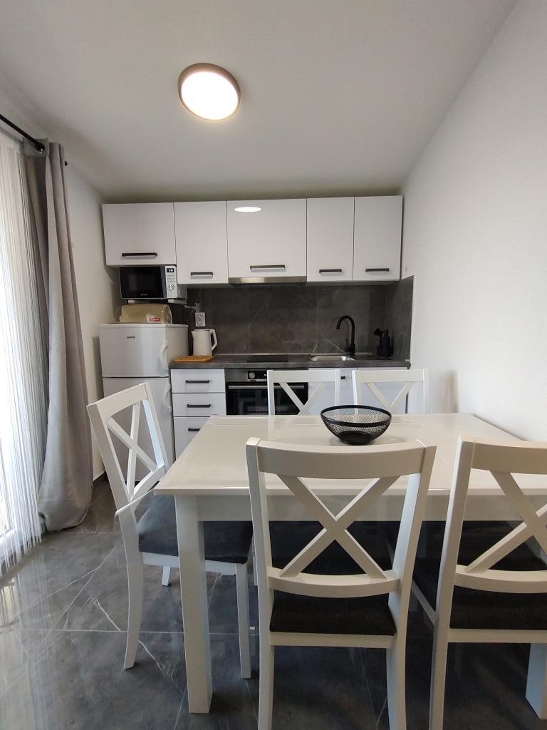 Studioul, apartamentul A2+2 și apartamentul A4+2 sunt situate într-o clădire nouă. Sunt complet utilate. Sunt situate într-o zonă liniștită a satului, asigurându-vă o vacanță de calitate. Terasele din toate apartamentele au vedere la mare. Ferestrele și ușile balconului au plase de țânțari încorporate. În curtea clădirii există o grădină mare cu leagăne pentru copii. În apropiere există plaje pentru toate gusturile: nisip, stâncoase, plajă lângă pădurea de pini, plajă cu pietriș și beton cu dușuri, vestiare, umbrele, teren de volei pe plajă, loc de joacă pentru copii, echipamente de fitness, bărci cu hidrobiciclete.