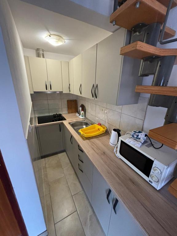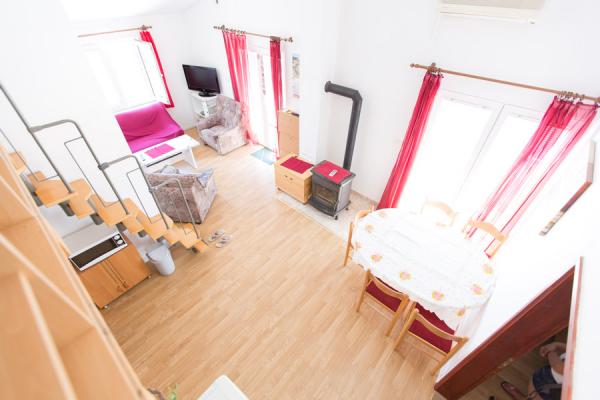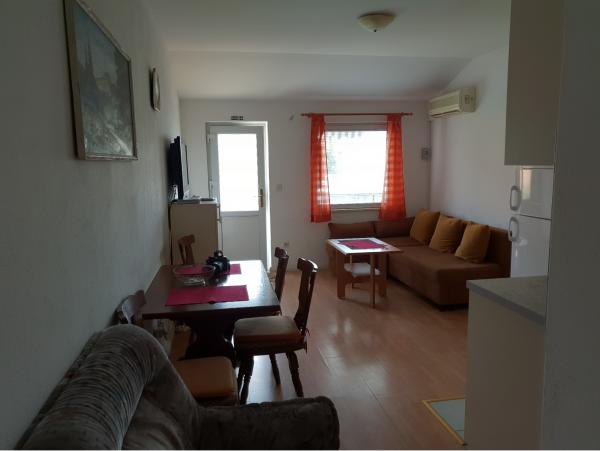 Am petrecut 2 săptămâni frumoase aici. Apartamentul este frumos, spațios și curat. O surpriză plăcută a fost răcorirea din frigiderul de acasă. Terasa este mare și spațioasă, priveliști frumoase asupra munților și mării. Plaja locală la câteva minute de mers pe jos de la cazare este locuri cu nisip în mare și coborâre treptată, potrivite pentru copii. Brutărie și magazin la 3 minute de mers pe jos. Domaci sunt foarte miły, ne-au lăsat să spălăm lucrurile. De asemenea, ne-au invitat la cină, pește la grătar și am avut o seară frumoasă cu ei pe terasa lor ... Dijana și Zlatko vă mulțumesc pentru 2 săptămâni frumoase.