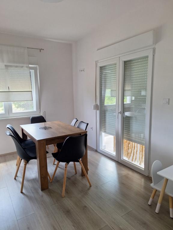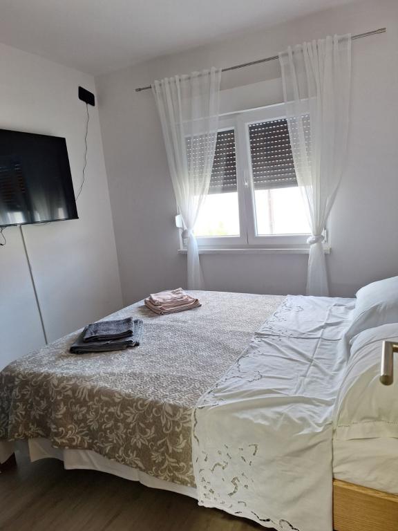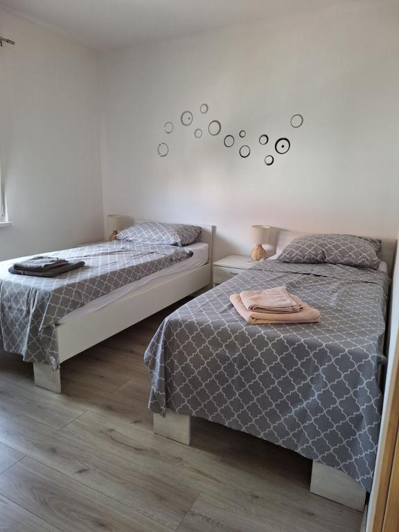 Apartamentele sunt situate în Nin - satul Ždrijac, într-o zonă liniștită, la 150 m de plajă, adică la 5 minute de mers pe jos, și la 400 m de oraș, adică la 10-15 minute de mers pe jos de-a lungul aleii pietonale. Apartamentul 1... este format din 3 camere, dintre care una este dotată cu televizor și o cameră (living dotat cu televizor și toaletă separată (cu mașină de spălat) și un pat suplimentar, bucătărie utilată cu mașină de spălat vase, frigider cu congelator, cuptor cu microunde, fierbător, baie cu cabină de duș și hol și terasă), existând în același timp un loc de parcare rezervat în curte. Apartamentul este destinat pentru 6 persoane. Apartamentul 2... este format din 2 camere, dintre care una este dotată cu televizor și un pat suplimentar, precum și o bucătărie, baie și balcon. Există un loc de parcare în curte. Apartamentul este destinat pentru 4 persoane - apartamentele au internet de mare viteză și televizor (Netflix...). Apartamentul 1 are un preț mai mare dacă sunt mai mult de 4 persoane. Apartamentul 2 are un preț mai mare dacă sunt 4 persoane.