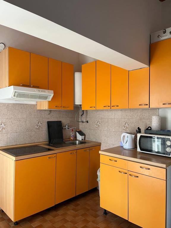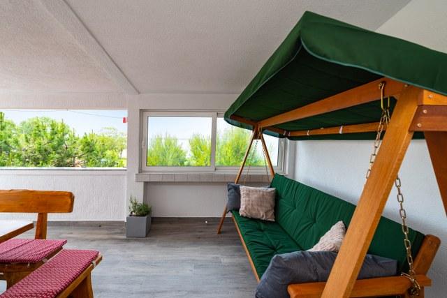 Proprietarii foarte frumos. Apartament de locuințe curate și dotate, cu o terasă mare acoperită. BBQ disponibile, mici pietricele plajă și nisip. Ok.1km la magazin. Ok.2km în oraș. Aș recomanda pentru familiile cu copii mici, persoanele în vârstă, sau cei care doresc să aibă pace și liniște.