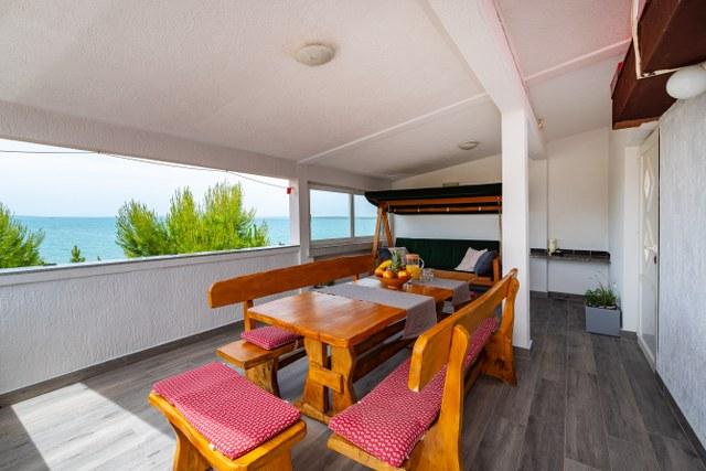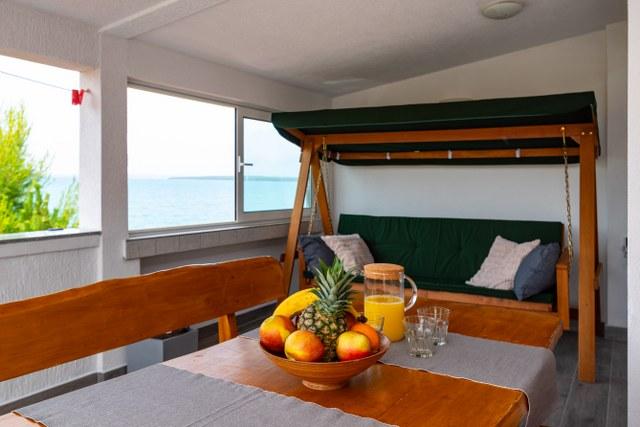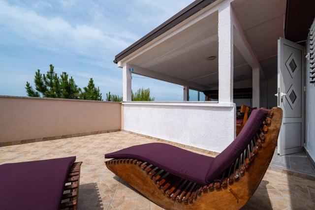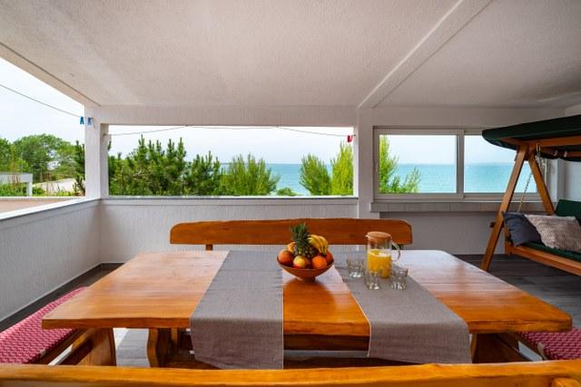 Apartament frumos cu o terasă minunată cu vedere la mare. Distanta pana la mare este fara indoiala un avantaj (prin drum si direct la plaja). Pe terasă există șezlonguri, un leagăn și puteți privi apusul. Cameră cu frigider mare, aer condiționat, mașină de spălat vase.
