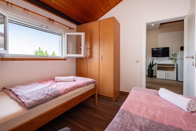 Foarte bine de cazare. Proprietarii au chiar mai mare cu un singur dormitor apartament cu 3mi / celkemn 7 paturi / cu vedere la mare şi o terasă mare acoperită la etajul 1 / parter în care trăiesc. Aşa că am trăit. Acestea sunt foarte utile. Plaja este peste drum, se întâlnesc la ei în jos pe scări. Este mâncarea şi 3 bărci cu pedale pentru chirie. Avantajul este, de asemenea, o parte cu nuanta naturala. Este nisip, bun pentru copii mici, dar într-o inundaţie mare bun şi adulţi. Desigur, aceasta atrage familiile cu copii, este de aşteptat. Nina, care a fost de aproximativ 1 km, chodilko un drum normal, aceasta a fost, probabil, singurul dezavantaj.