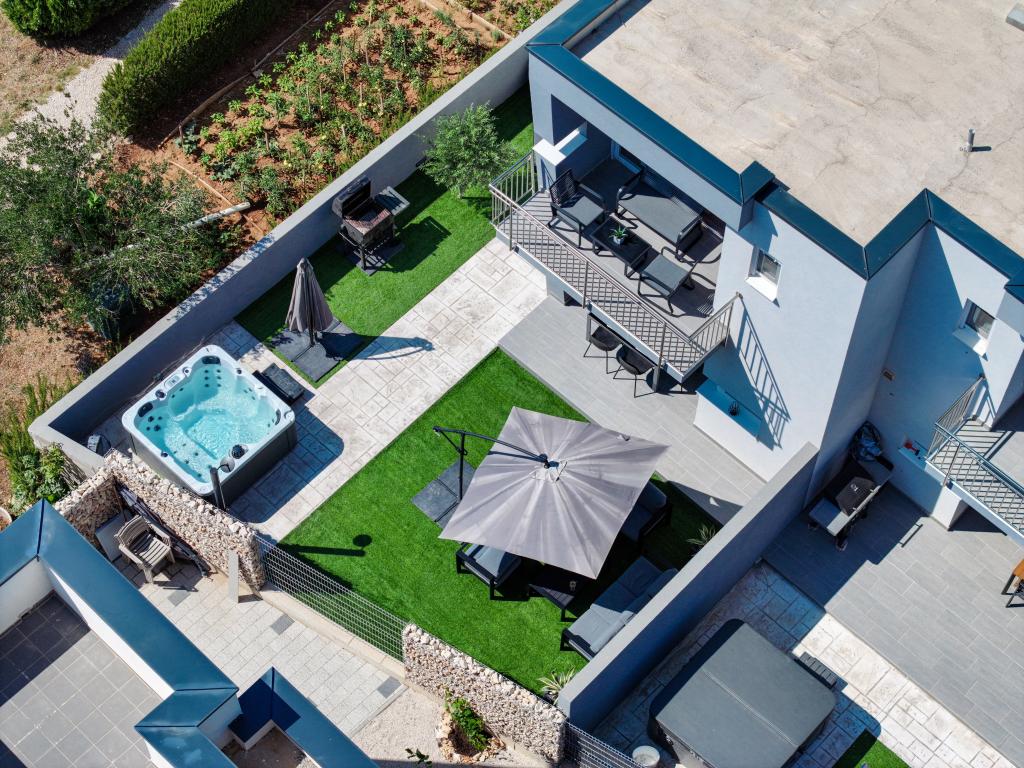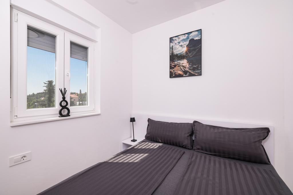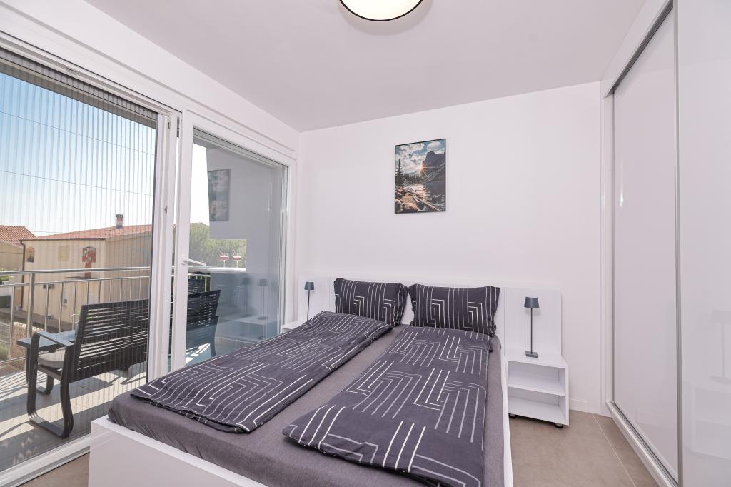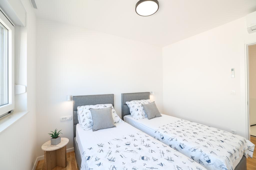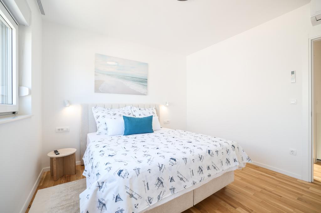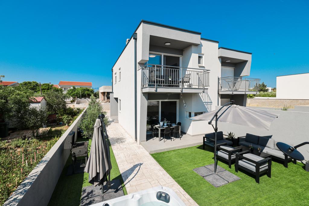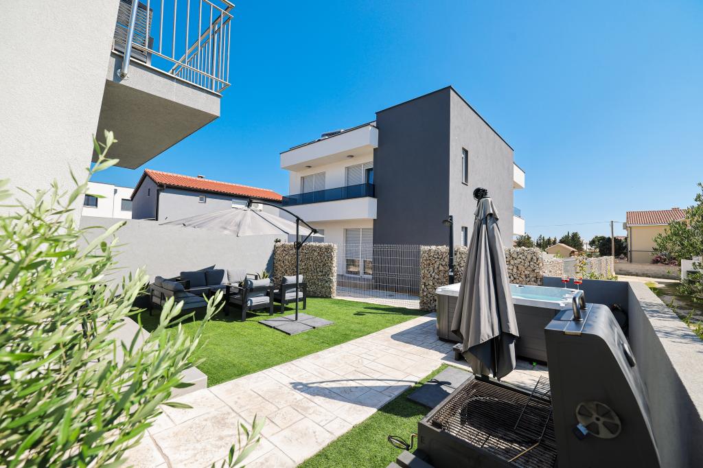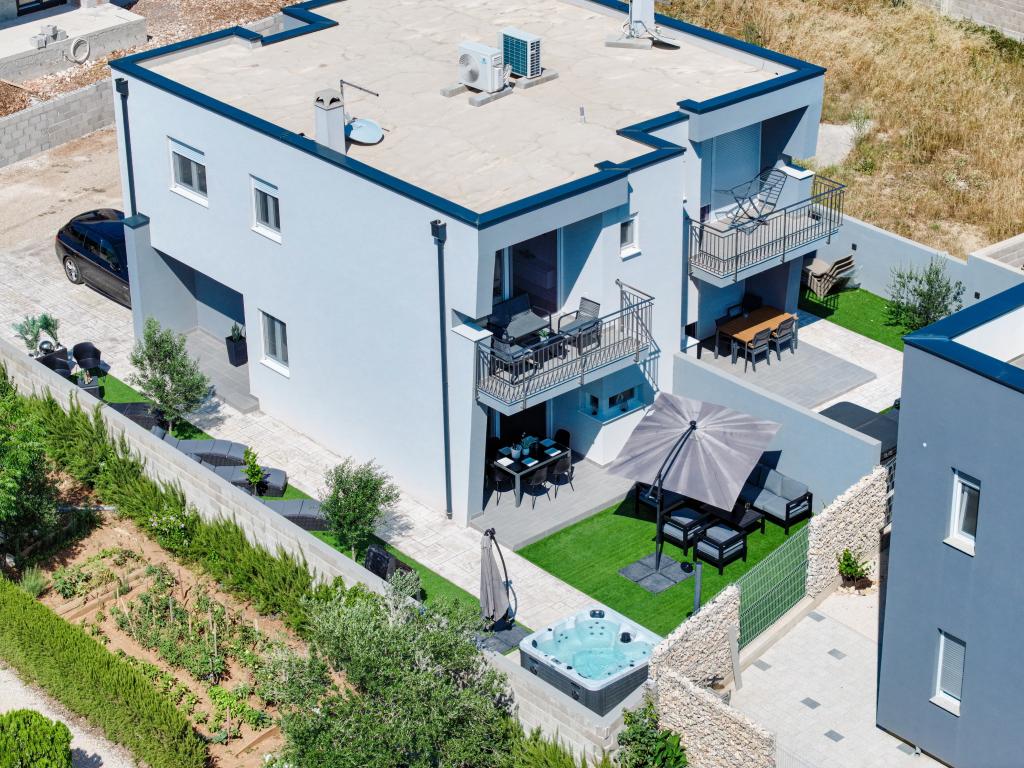 Apartament modern și complet mobilat cu trei camere într-o zonă liniștită și liniștită a satului Vrsi. Proprietatea este situată la 800 de metri de mare, are 3 dormitoare dotate cu aer condiționat și TV, două băi, o terasă frumoasă cu cadă de masaj, masă și șezlonguri. Bucătăria este complet utilată, iar un alt televizor și aer condiționat sunt disponibile în zona comună.
