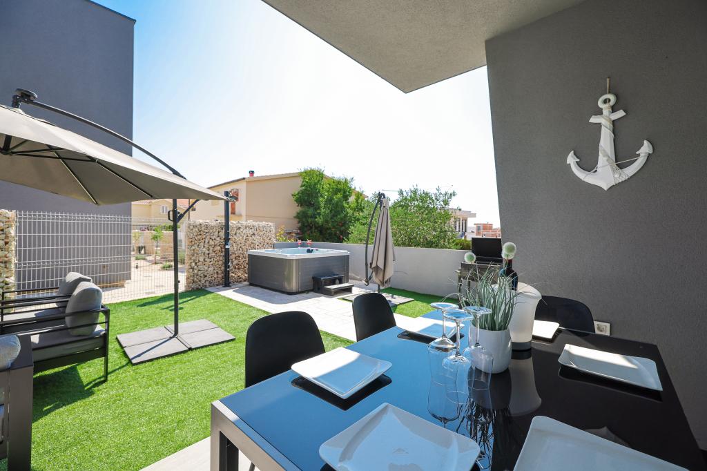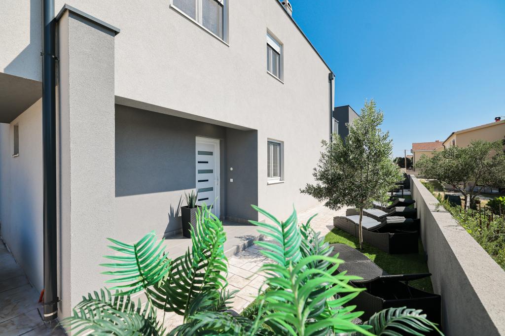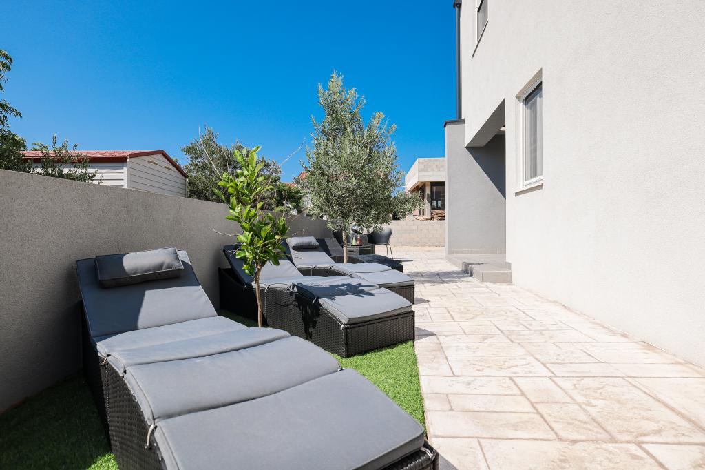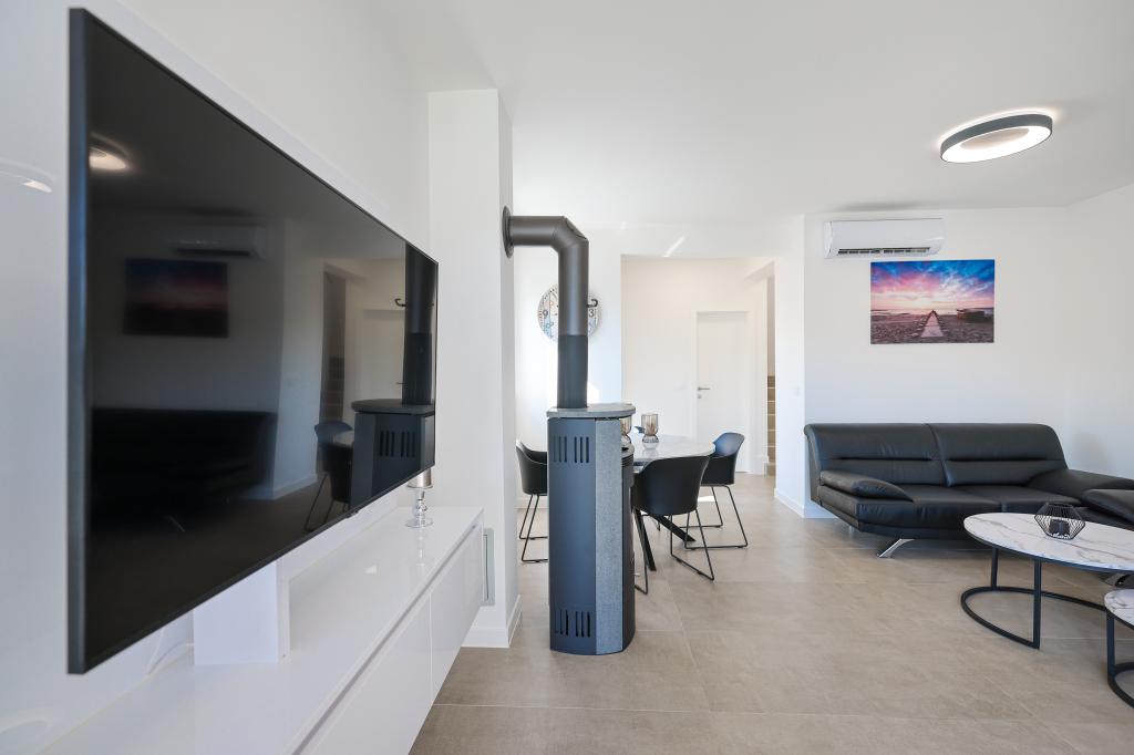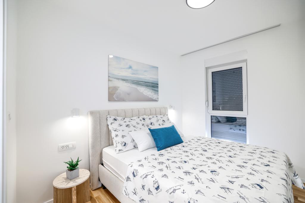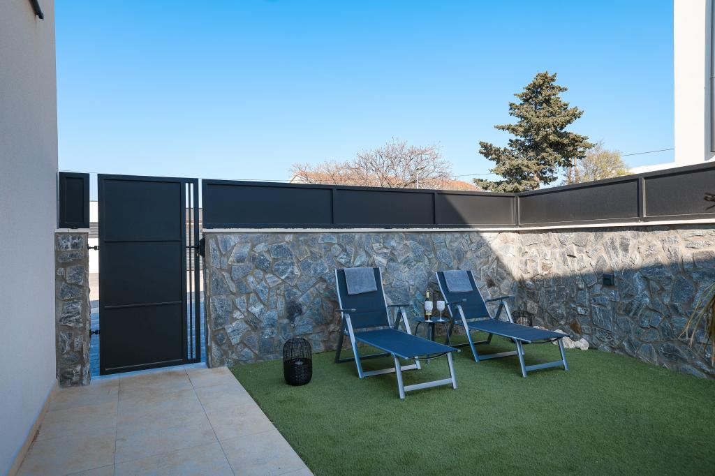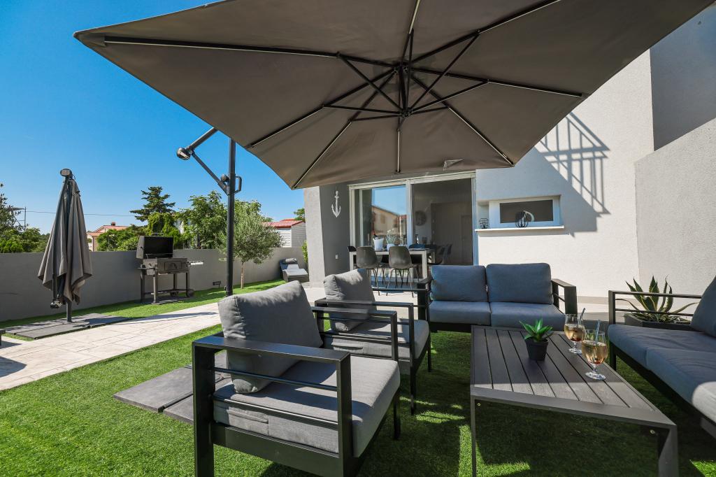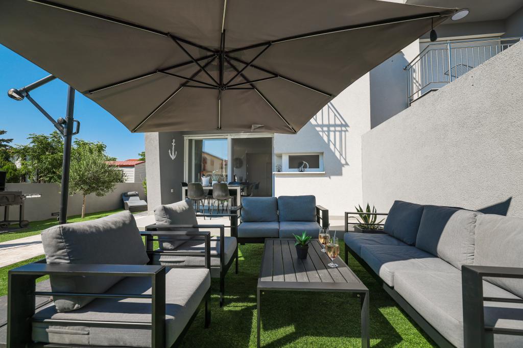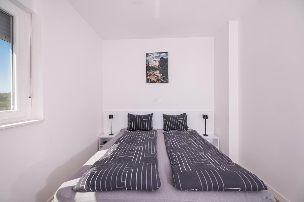 Apartament modern și complet mobilat cu trei camere într-o zonă liniștită și liniștită a satului Vrsi. Proprietatea este situată la 800 de metri de mare, are 3 dormitoare dotate cu aer condiționat și TV, două băi, o terasă frumoasă cu cadă de masaj, masă și șezlonguri. Bucătăria este complet utilată, iar un alt televizor și aer condiționat sunt disponibile în zona comună.