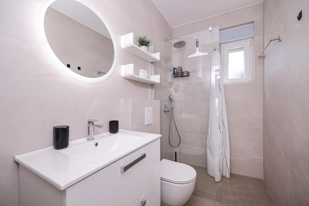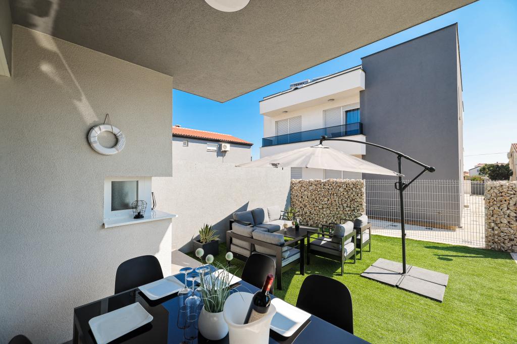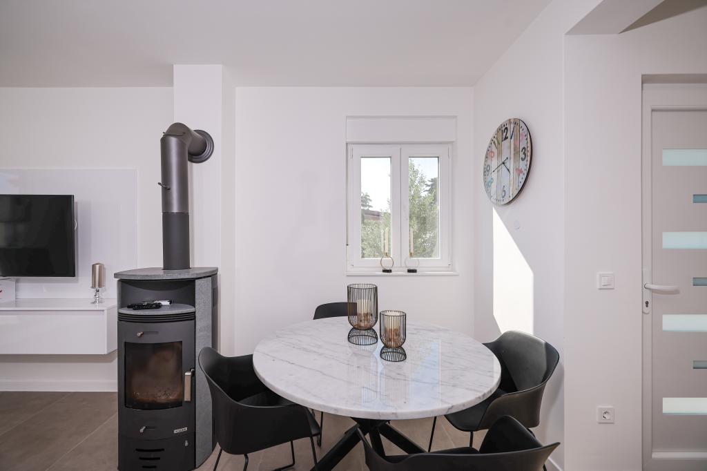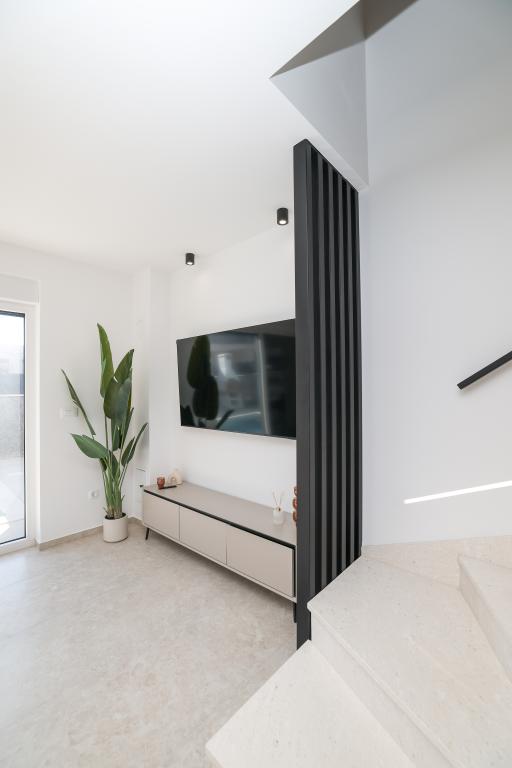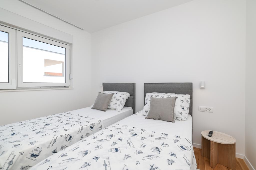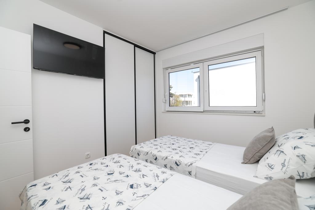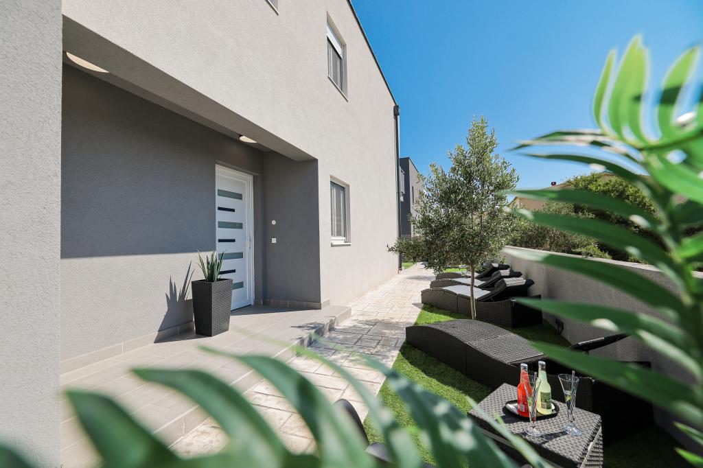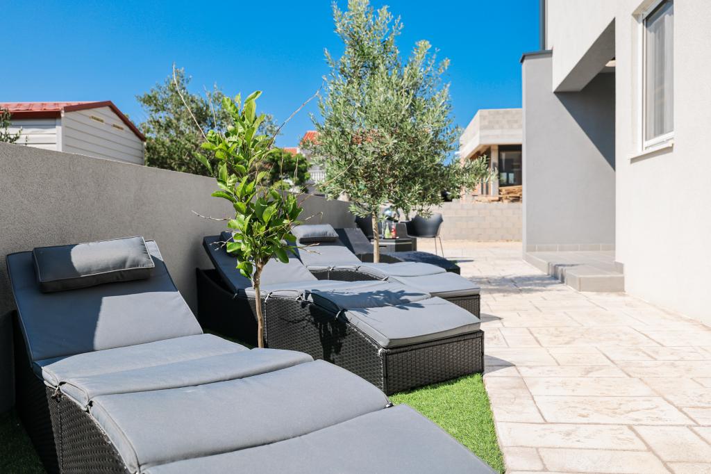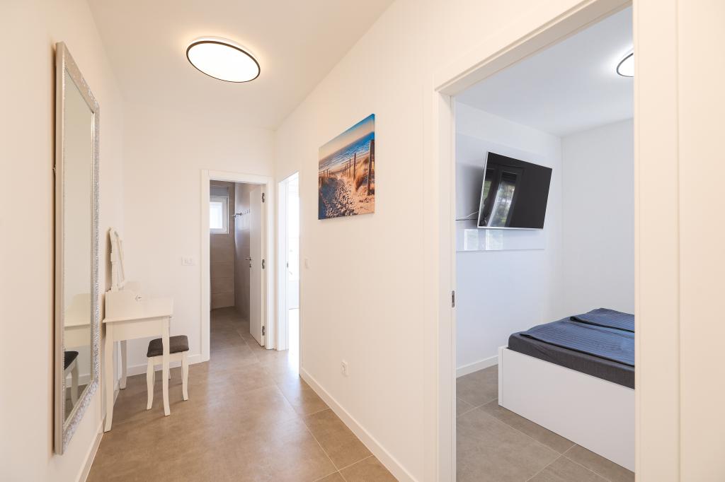Apartament modern și complet mobilat cu trei camere într-o zonă liniștită și liniștită a satului Vrsi. Proprietatea este situată la 800 de metri de mare, are 3 dormitoare dotate cu aer condiționat și TV, două băi, o terasă frumoasă cu cadă de masaj, masă și șezlonguri. Bucătăria este complet utilată, iar un alt televizor și aer condiționat sunt disponibile în zona comună.