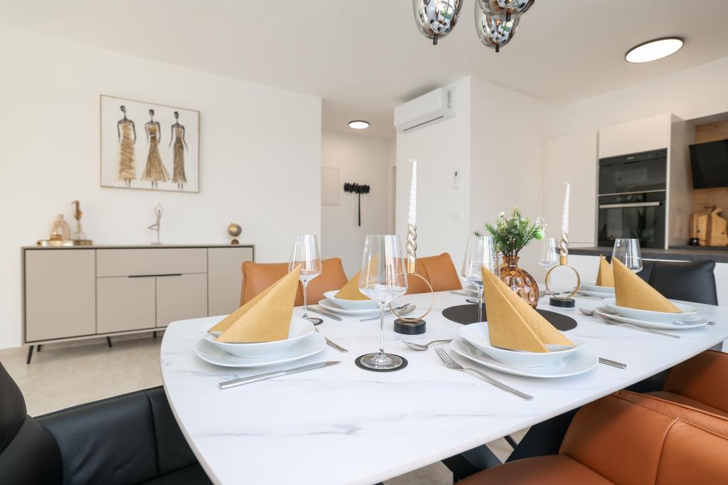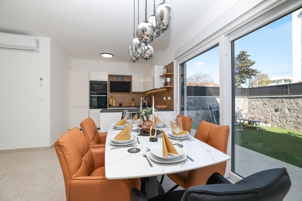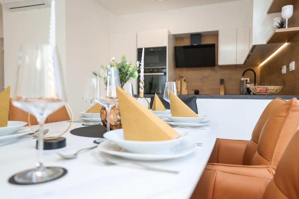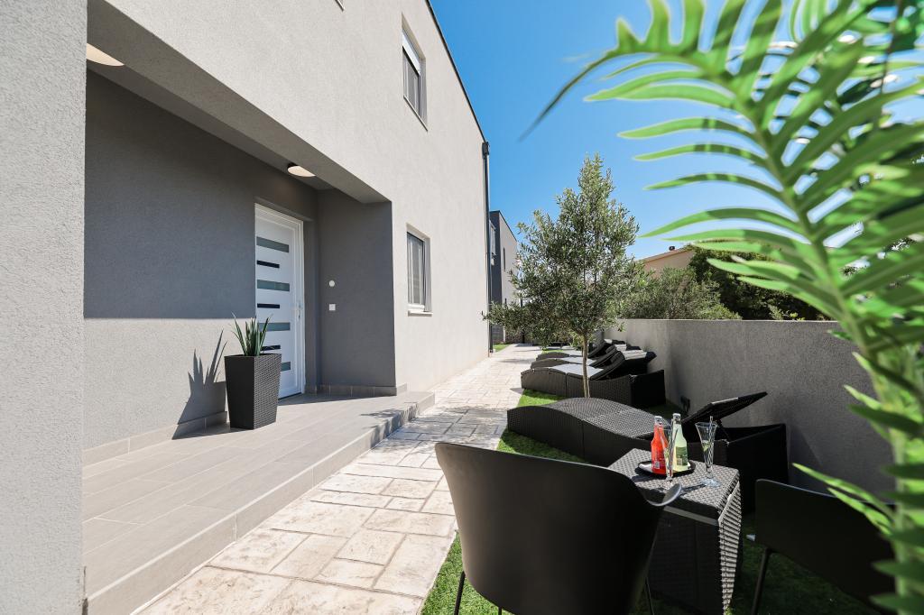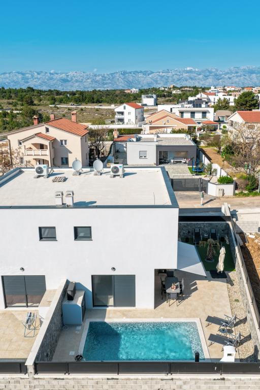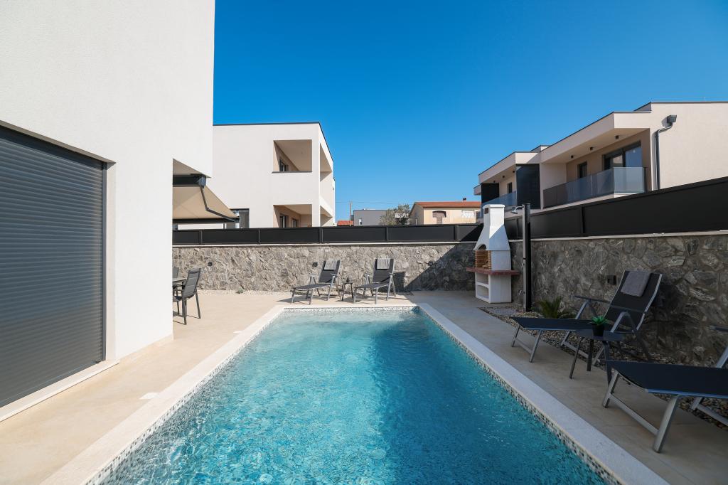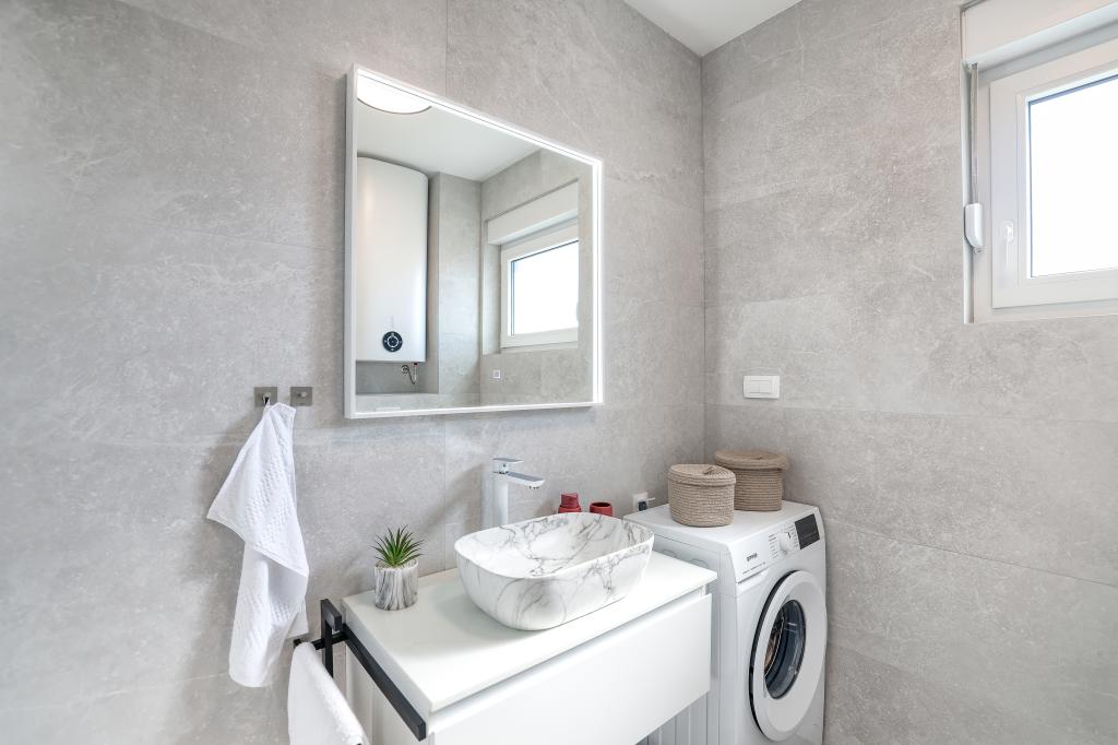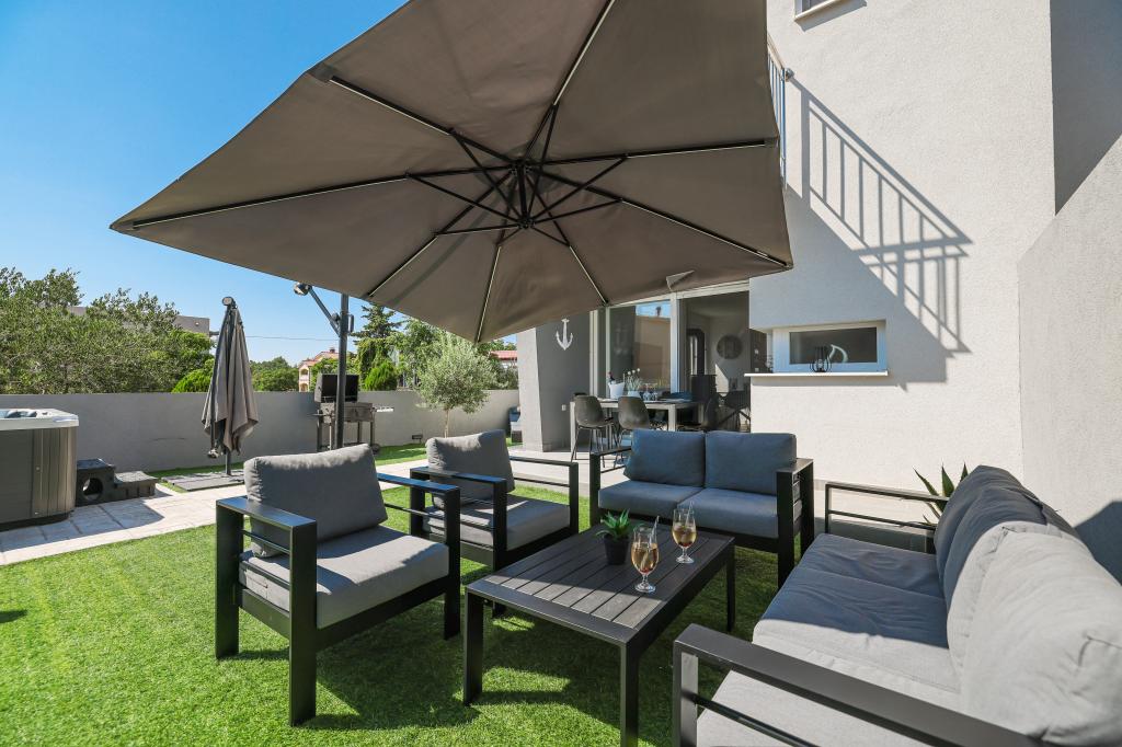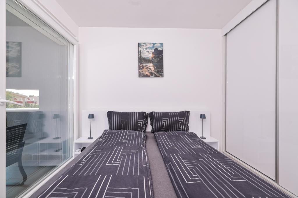 Apartament modern și complet mobilat cu trei camere într-o zonă liniștită și liniștită a satului Vrsi. Proprietatea este situată la 800 de metri de mare, are 3 dormitoare dotate cu aer condiționat și TV, două băi, o terasă frumoasă cu cadă de masaj, masă și șezlonguri. Bucătăria este complet utilată, iar un alt televizor și aer condiționat sunt disponibile în zona comună.