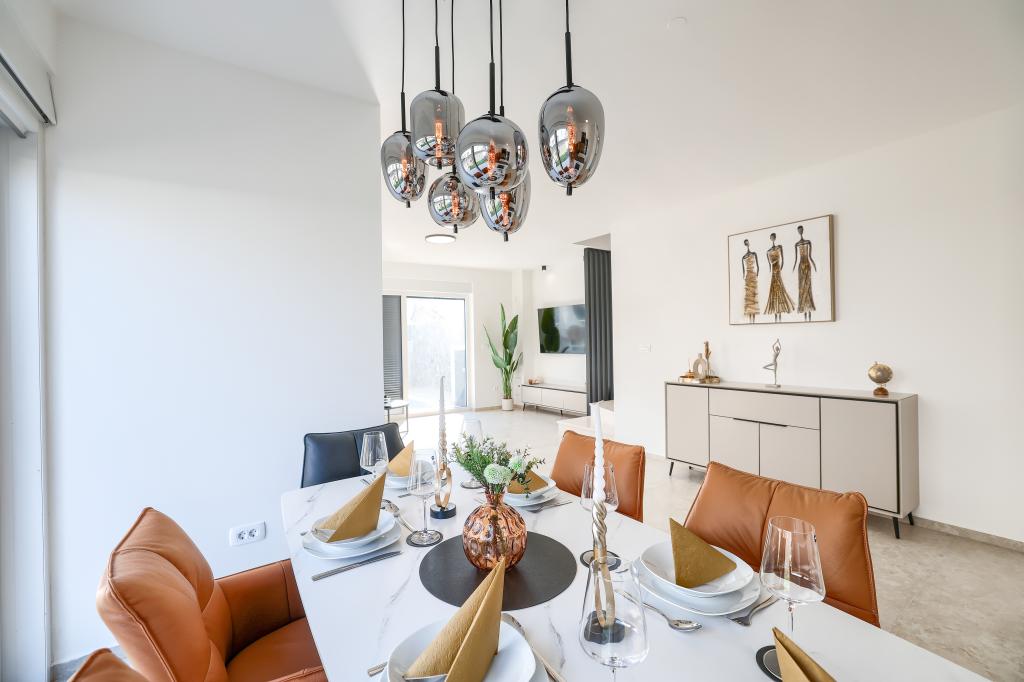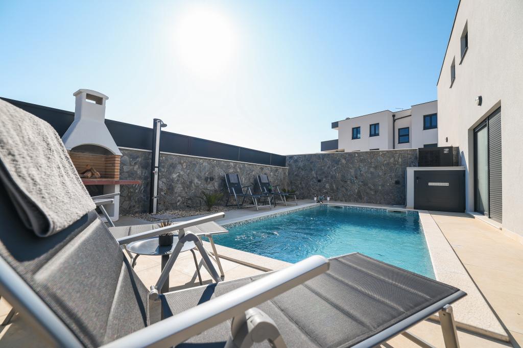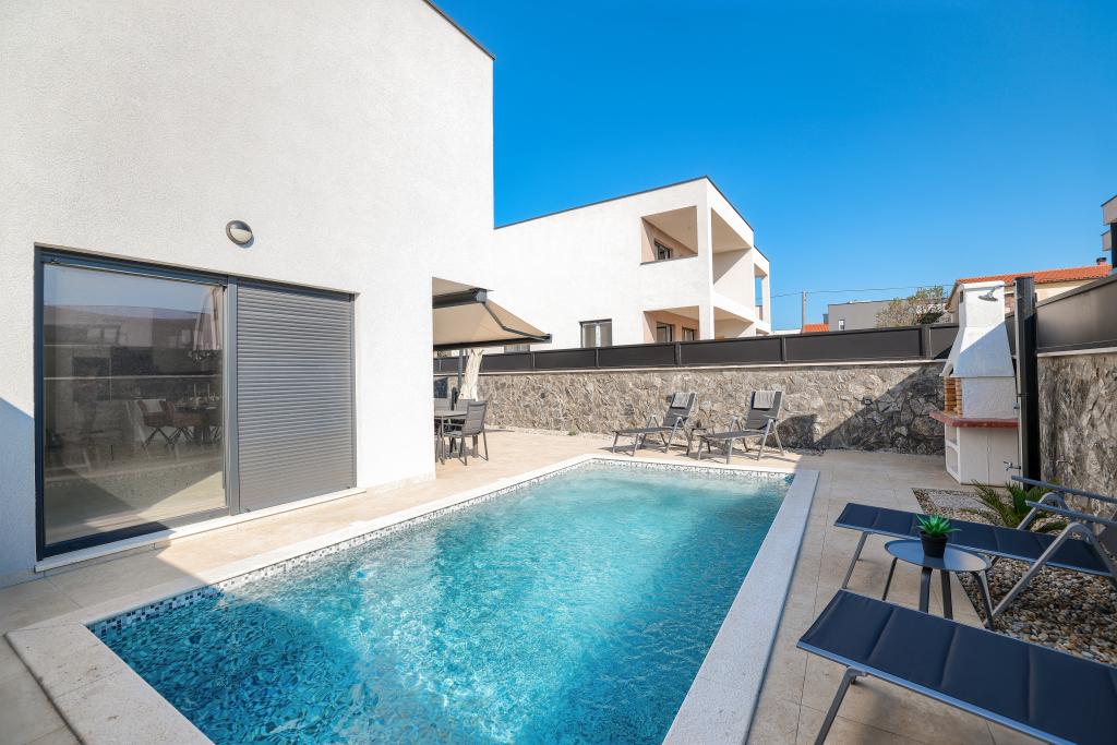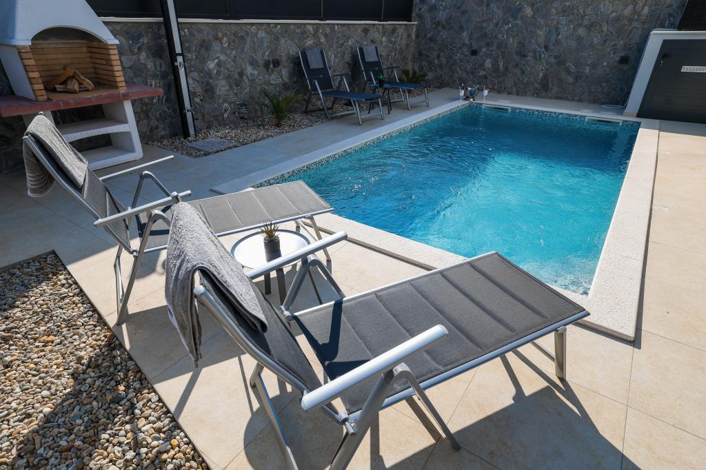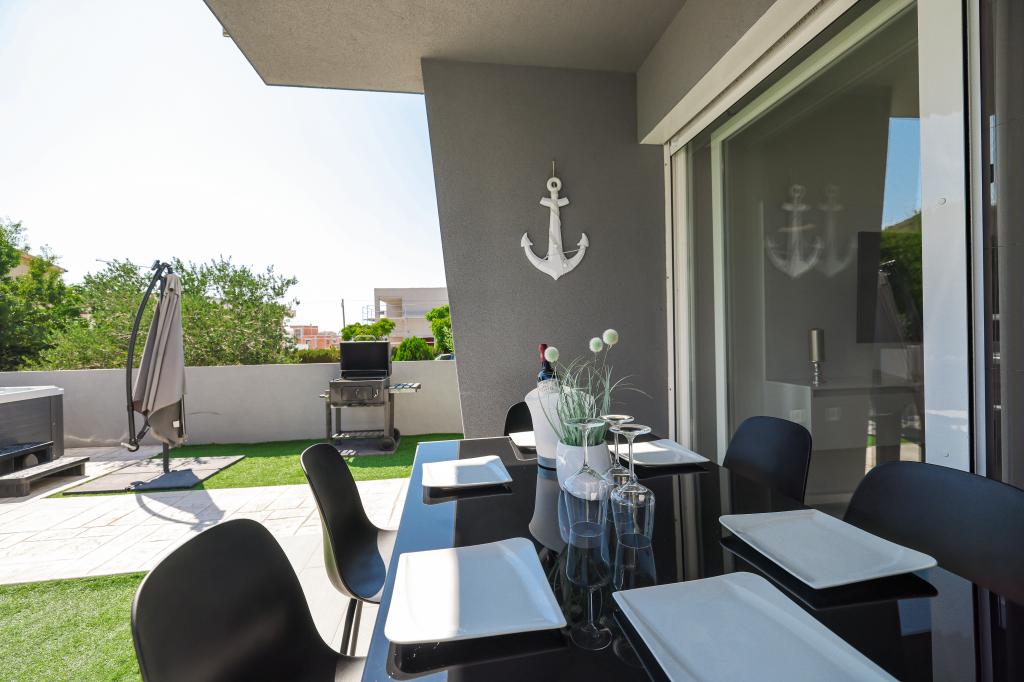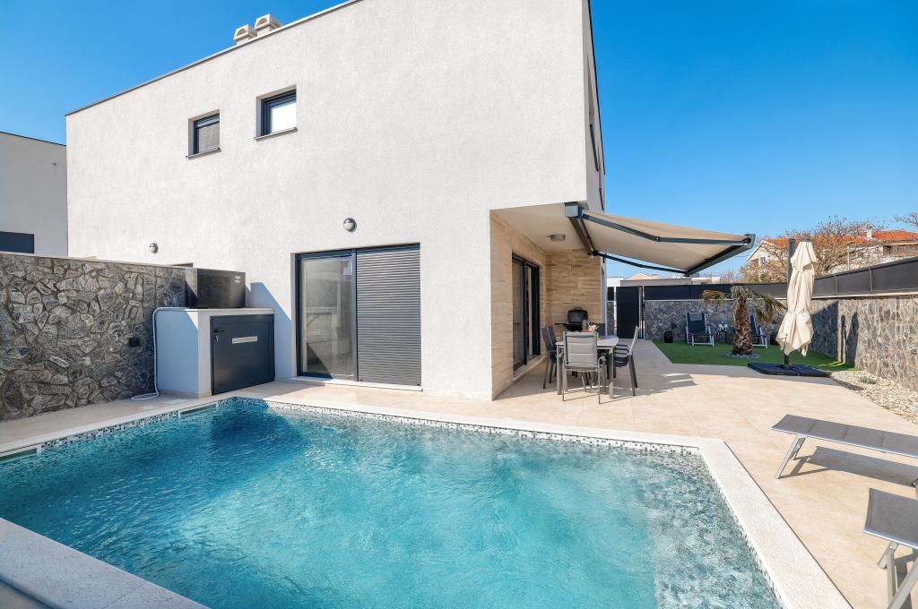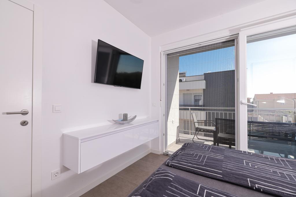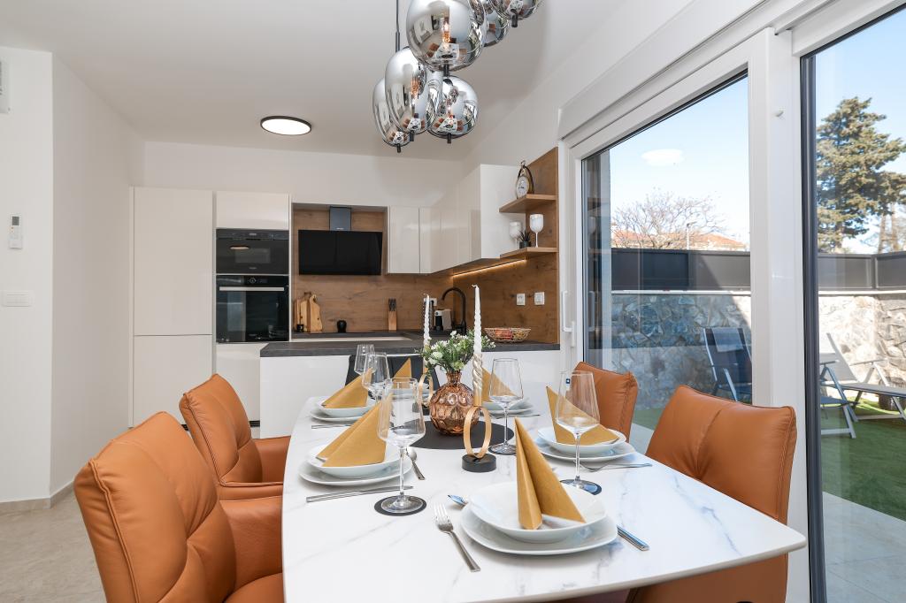 Apartament modern și complet mobilat cu trei camere într-o zonă liniștită și liniștită a satului Vrsi. Proprietatea este situată la 800 de metri de mare, are 3 dormitoare dotate cu aer condiționat și TV, două băi, o terasă frumoasă cu cadă de masaj, masă și șezlonguri. Bucătăria este complet utilată, iar un alt televizor și aer condiționat sunt disponibile în zona comună.