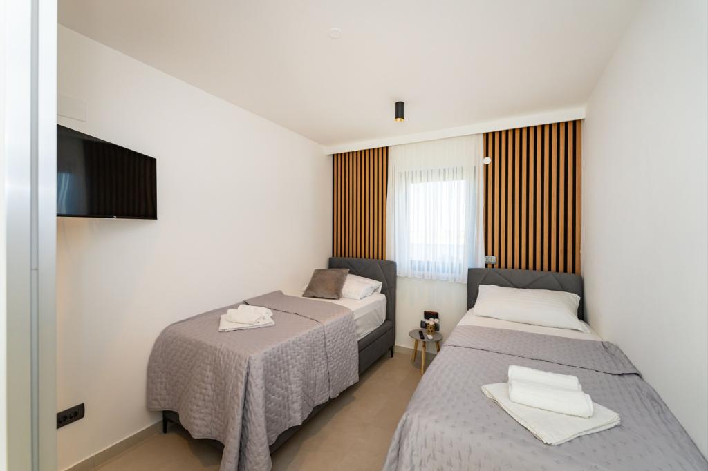 Vila LaMag, o vilă modernă nou construită, este situată în frumosul și liniștitul sat Vrsi Zukve, la 20 km de Zadar și la 5 km de orașul regal Nin, și la aproximativ 2,5 ore de mers cu mașina de Zagreb. Plaja se află la doar 3 minute de mers pe jos, cel mai apropiat restaurant la doar 400 de metri, iar supermarketul la mai puțin de un kilometru. Explorați frumoasele plaje cu nisip fin din Nina și Ljubača (10 minute de mers cu mașina) sau vizitați insulele Pag și Vir din apropiere, conectate printr-un pod. Farmecul istoric al orașului vechi Zadar, cu străzile sale înguste și comorile culturale, se află la doar 25 de minute de mers cu mașina. Acest lucru face din apartamentul dumneavoastră baza perfectă de la care puteți descoperi minunile acestei regiuni de coastă incredibile.