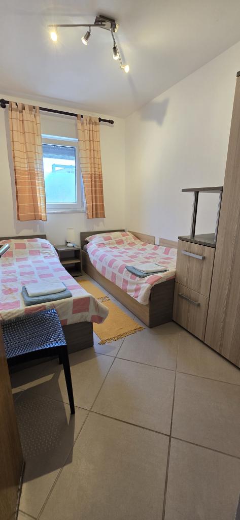 Apartamente mobilate în zonă de cabane liniștită Zukve, în apropiere de orașul de Nin Nina.Blizina trgovine.Blizina oră blata.1 medicinal unitate de parcuri naționale (Plitvice, Krka, Paklenica). Zukve situat la 15 km de orașul Zadar. La plaja de beton de 80 de metri la 300 de metri de nisip Apartament A4 (a) este situat la etajul al curții. Apartament A4 (b) este situat la parter de pe strada. Ambele apartamente au locuri de parcare.