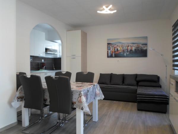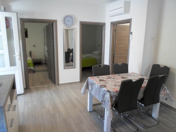 Proprietari foarte amabili și prietenoși. Au avut grijă de fiecare lucru necesar. Recomand pentru familiile cu copii. Apartamentul este nou, echipat în așa fel încât practic nu trebuie să poarte nimic. Plaja cu pietricele mici unde copiii se pot juca toată ziua este la 50m de apartament, magazinul este la 20m de apartament. Am fost mulțumiți și cred că ne vom întoarce.