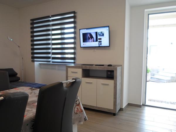 Cel mai frumos apartament de până acum, mobilat modern, cu două dormitoare (paturi mari, confortabile și dulapuri mari, iaurturi confortabile), baia are o mașină de spălat, bucătăria are și o mulțime de echipamente (aproape mai mult decât acasă) și o mașină de spălat vase. Toate produsele de curățat de lângă vase, mașina de spălat vase și mașina de spălat. Proprietarii super prietenoși - au cumpărat un cadou pentru un fiu care a avut o zi de naștere în acele zile. Apartamentul se află la câțiva pași de frumoasa plajă, dar chiar atât de departe încât nu există agitație. adus pe terasă. La 5 minute se află restaurante, patiserii cu cea mai bună înghețată, standuri, nu că nu există ... (Njivice) sunt legea - recomandăm :)