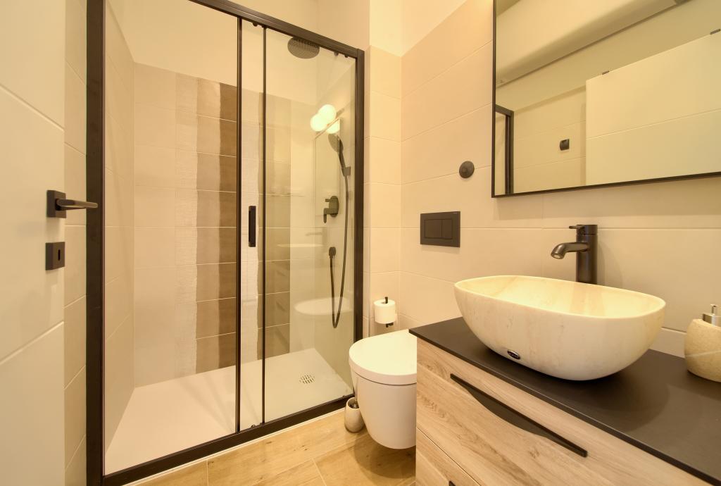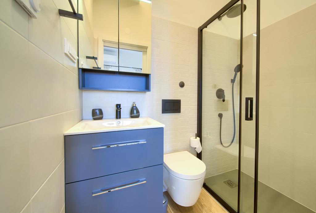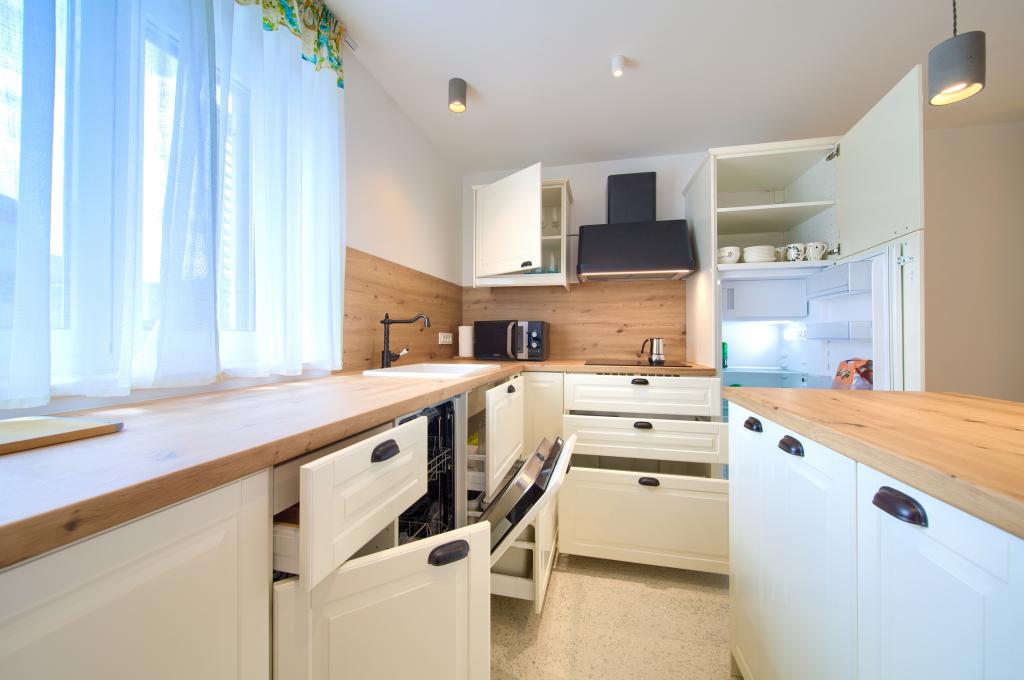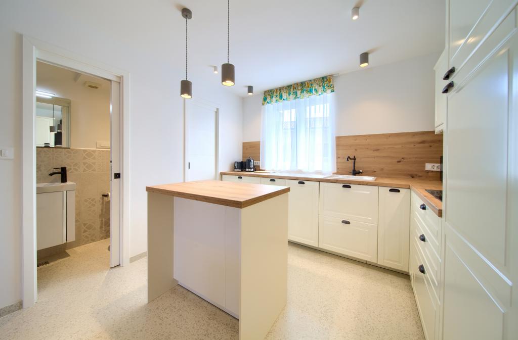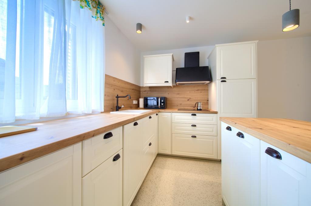 Apartamente modern utilate într-o zonă liniștită, situate în centrul orașului. Apartamentul este pe două etaje, cu o suprafață totală de 70m2, la primul etaj fiind dormitoare, fiecare cu baie proprie. La parter se află o bucătărie spațioasă cu un living și o toaletă mică. Proprietatea este situată la 2 minute de mers pe jos de plajă, magazine și centru. Suprafața totală este de 70m2. Parcarea pentru trei mașini se află în interiorul proprietății și este gratuită. Animalele de companie sunt permise cu acordul prealabil și sub supravegherea constantă a proprietarului.