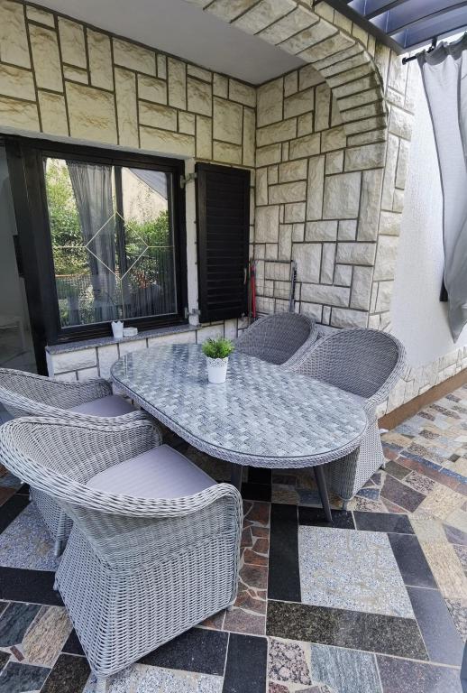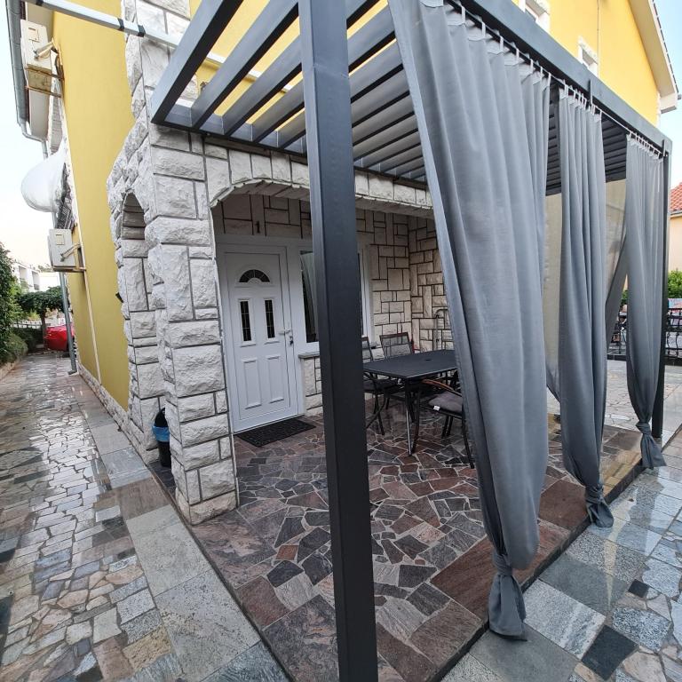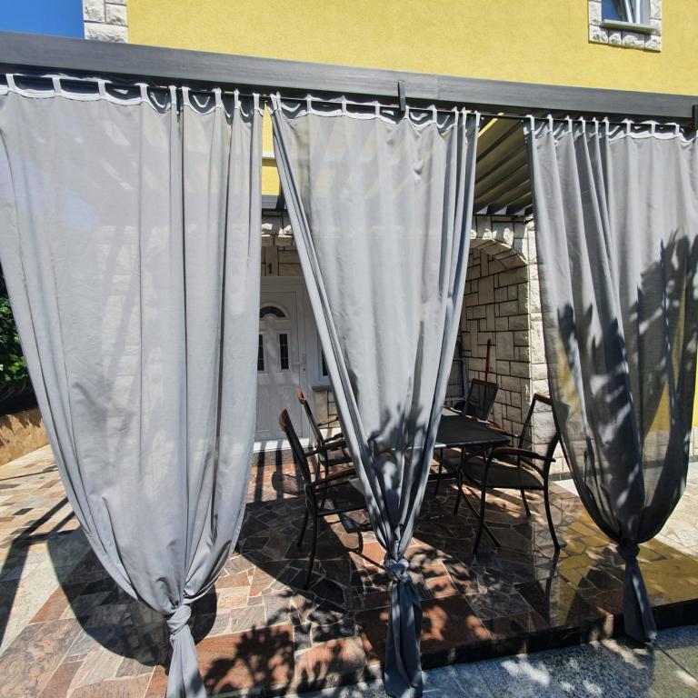 Casa este situată într-o zonă liniștită din Njivica pe insula Krk, la 500 m de mare și este foarte potrivită pentru o vacanță în familie. Este potrivită în special pentru copii deoarece există o curte împrejmuită și leagăne. Există o parcare mare în fața casei cu gard, astfel încât mașina dumneavoastră va fi în siguranță. Există, de asemenea, o grădină mare și o terasă în aer liber unde vă puteți bucura de grătar și umbră pe tot parcursul zilei. Conținut apartament: dormitor cu pat dublu bucătărie (plită cu inducție, chiuvetă, cuptor cu microunde, frigider cu congelator, ceainic, aparat de cafea) aer condiționat living cu canapea extensibilă pentru 2 persoane baie (cu mașină de spălat) balcon sau terasă cu masă și scaune pentru relaxare și distracție