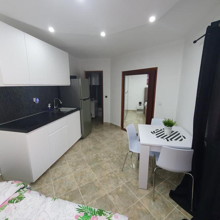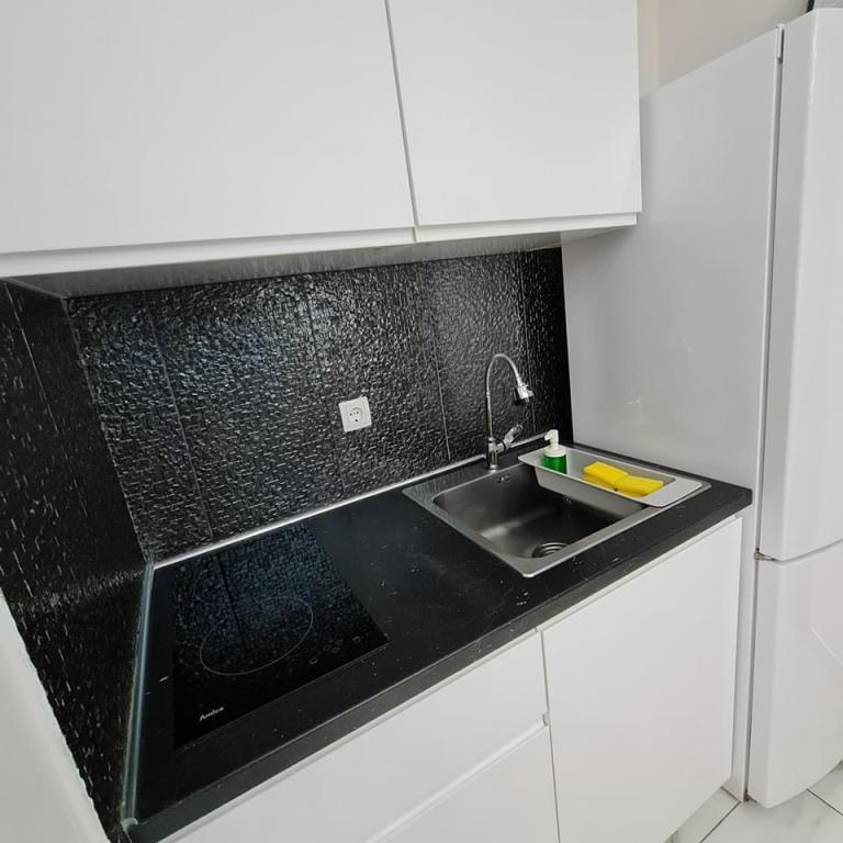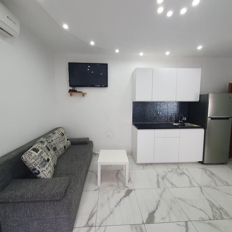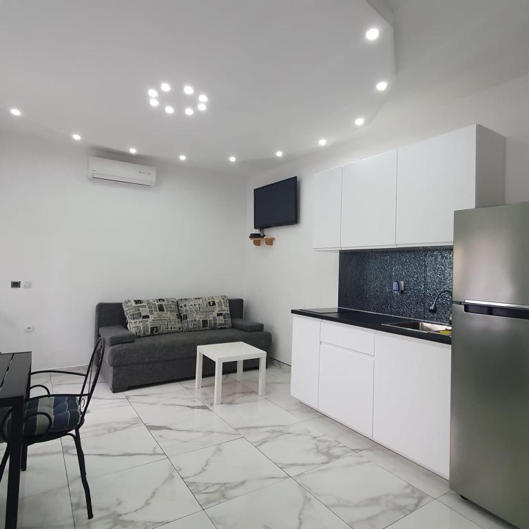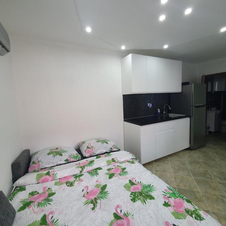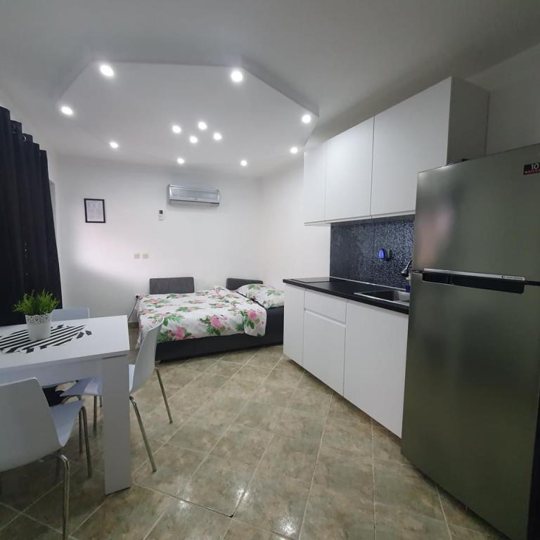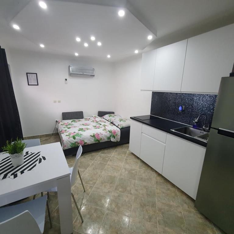 Este foarte departe de mare. Este greu de accesat. Proprietarul ne-a cerut actele de identitate înainte să despachetăm bagajele și a trebuit să plătim. Am aspirat canapeaua din aceeași cameră cu bucătăria, era mult praf. A trebuit să facem patul. Cabina de duș din baie se dărâma, partea dintre chiuvetă și cabină era, ca să spun blând, dezgustătoare. Marginea cabinei era și ea. Sertarul dulapului din baie se dărâma. Nu există priză în zona bucătăriei, puteam doar să fierb apă pe pervaz.
