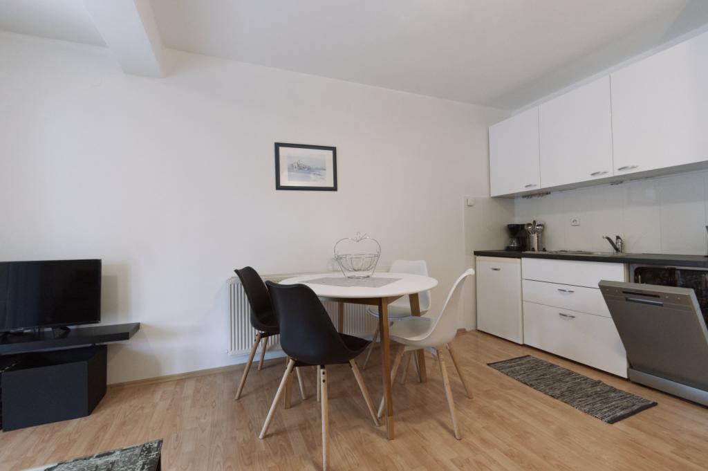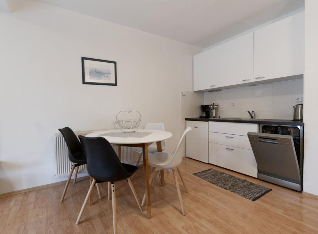 Apartamentele moderne sunt situate în micul sat de pescari Njivice, pe insula Krk. Njivice este la numai 11 km de Aeroportul Rijeka. Unitatea este situată la 3 minute de mers pe jos de centrul orașului și de plajele frumoase cu pietriș, unde vă puteți relaxa și vă puteți bucura de soare și mare. Locul este ideal pentru familiile cu copii mici și persoanele care doresc să se bucure de aer curat. Apartamentele constau dintr-un dormitor, baie, living spatios cu bucatarie si sufragerie, balcon si o terasa spatioasa frumoasa, care este ideala pentru cafeaua dimineata, precum si pentru distractia de seara in timp ce aerul proaspat vine din padure. Datorită canapelei extensibile din living, poate găzdui două persoane suplimentare. Garsoniera este compusă dintr-un living cu un pat, o sufragerie și o bucătărie separată, o baie separată și o mică terasă acoperită în fața intrării (20m2).